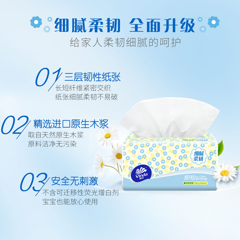 维达细韧抽纸100抽家用面巾纸卫生纸实惠批发酒店商务学生宿舍纸