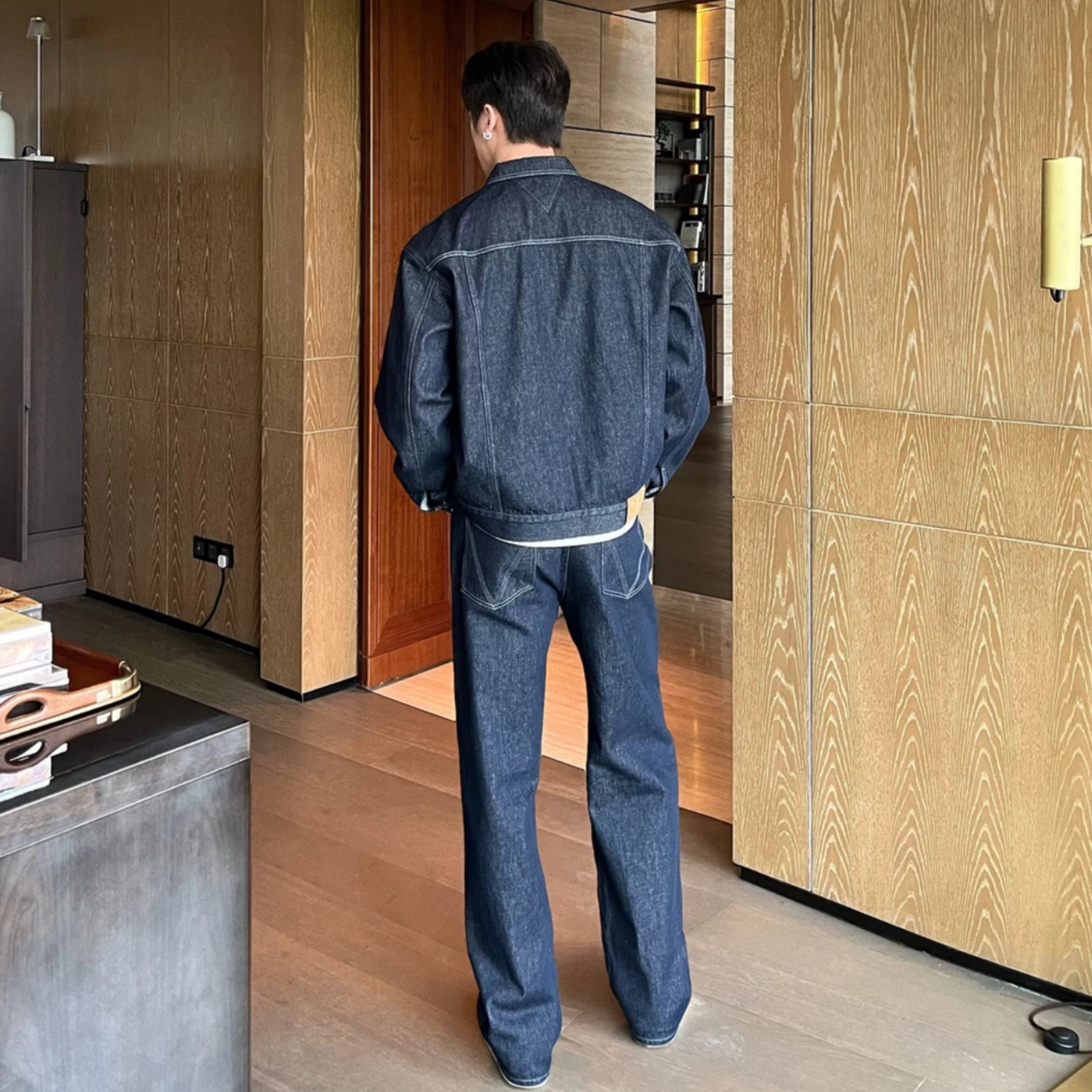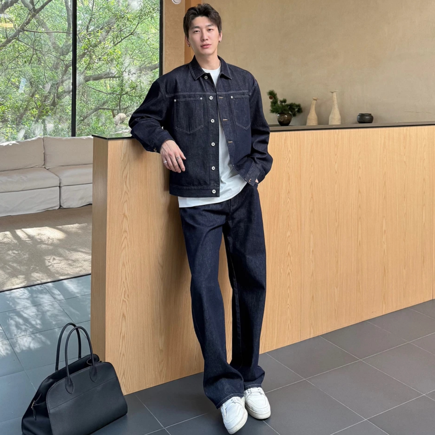 秋季牛仔套装男美式简约长袖外套时尚休闲潮流男裤两件套小众百搭