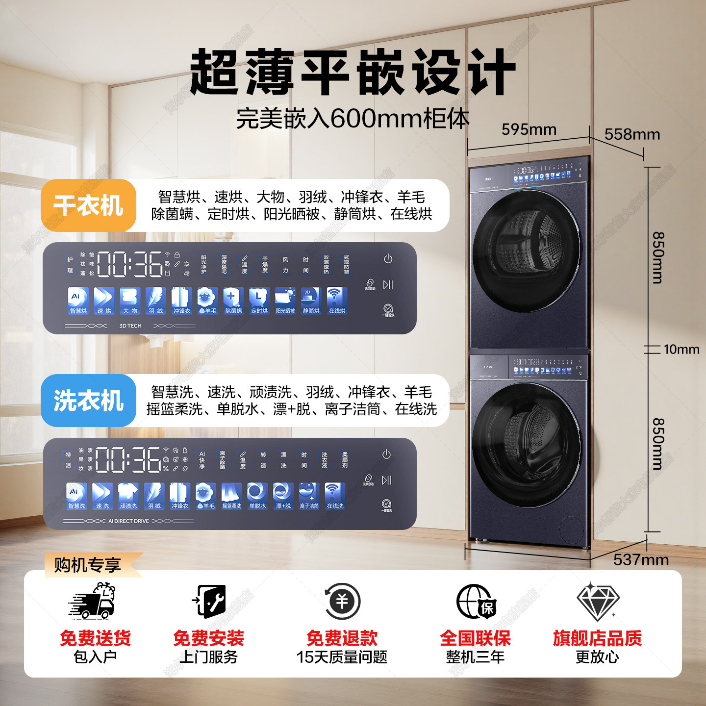 海尔天悦洗烘套装A9纯平全嵌直驱变频AI双智控3D判干热泵烘干旗舰
