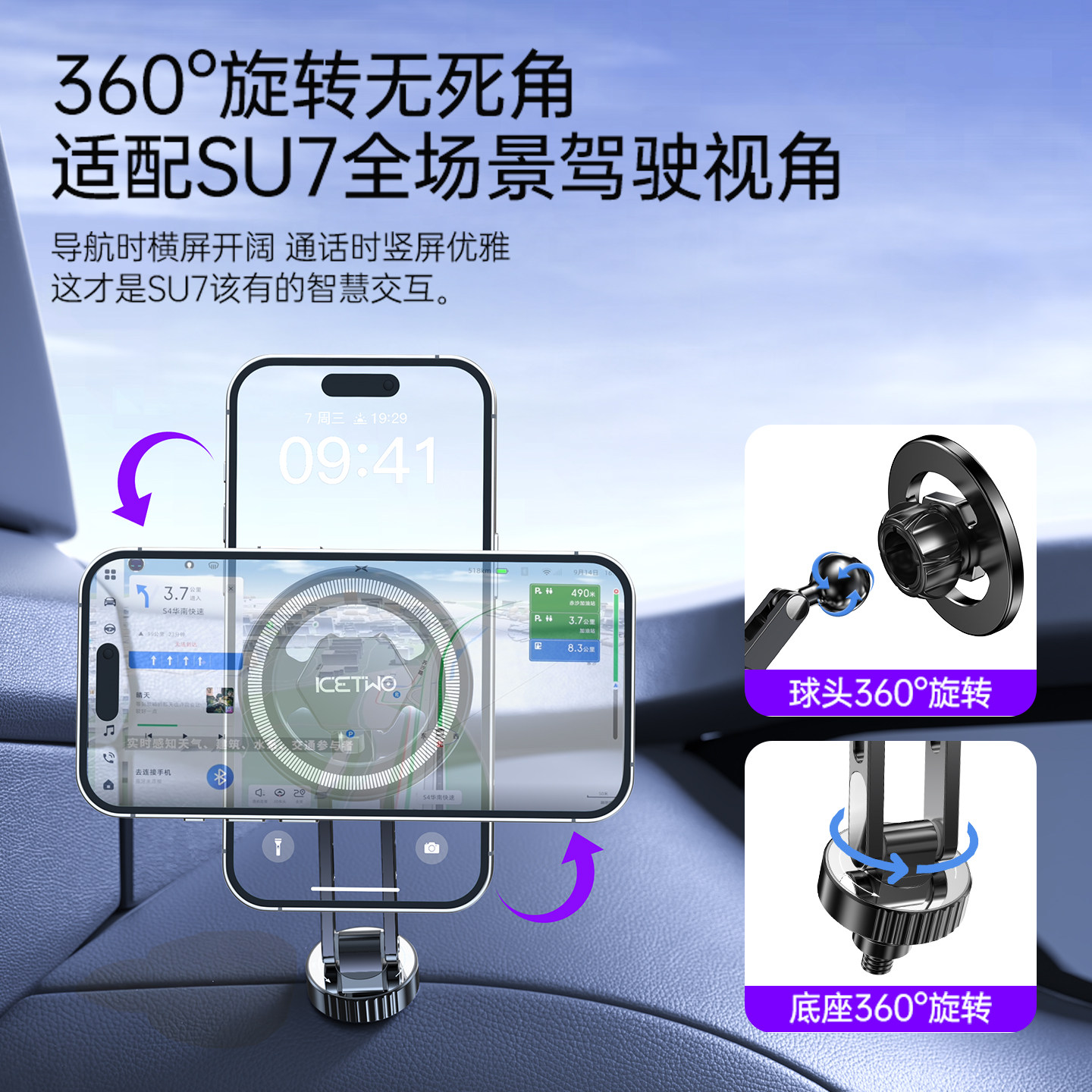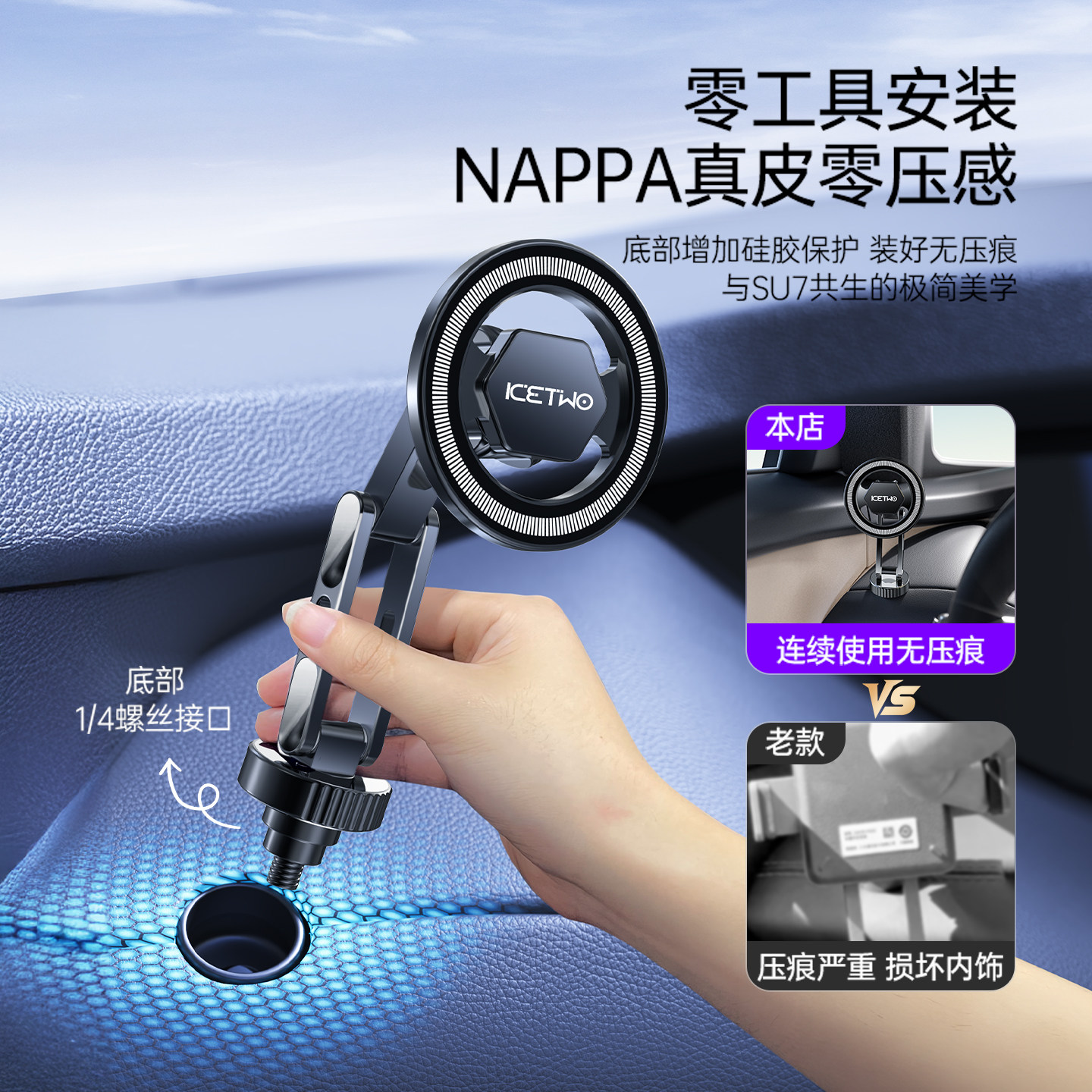适用小米SU7车载手机支架磁吸汽车中控导航1/4螺丝yu7通用改装