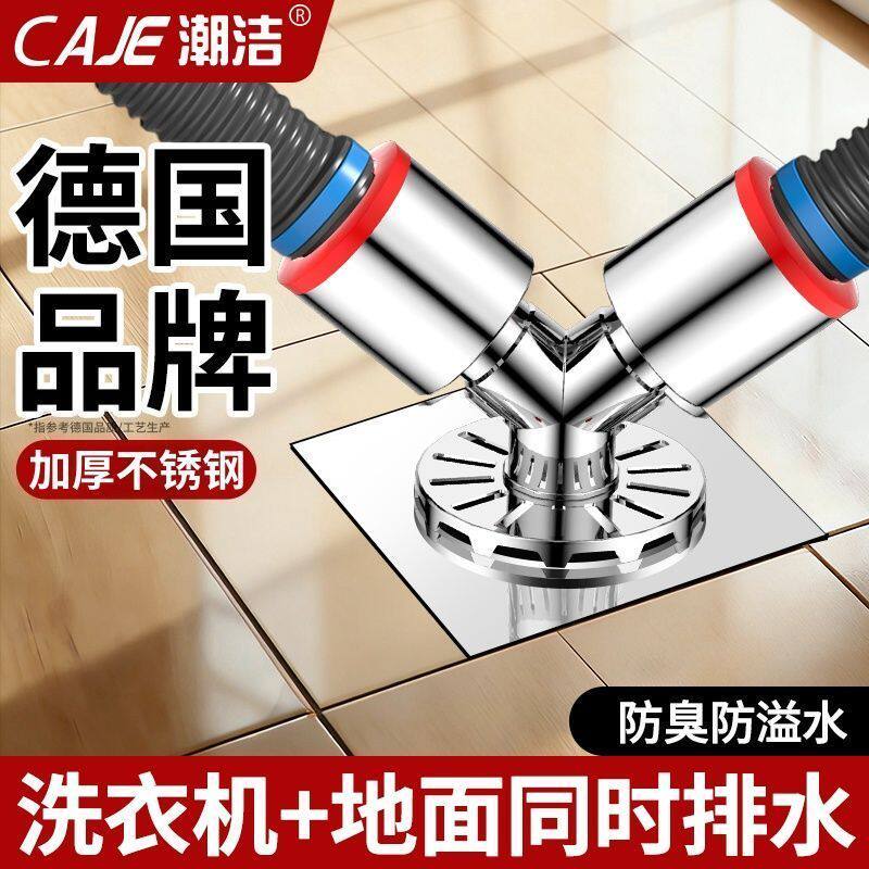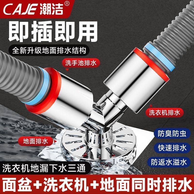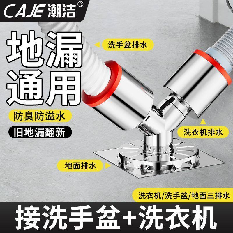 潮洁洗衣机不锈钢断层专用下水三通接头管道通用旧地漏盖翻新器