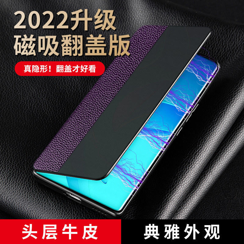 适用荣耀50pro手机壳磁吸华为hinova9pro保护套真皮翻盖式50s全包