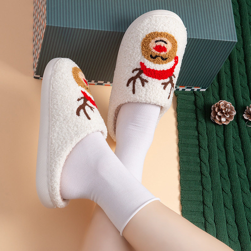 圣诞节卡通棉拖鞋圣诞麋鹿秋冬季加厚爆款室内居家日用棉拖