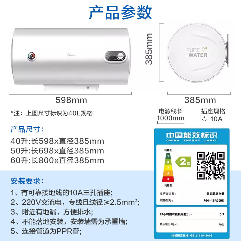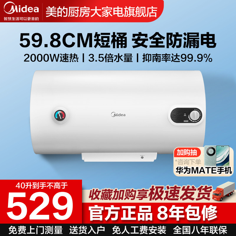 美的电热水器40/50/60升家用小型出租房速热储水式卫生间洗澡15A3
