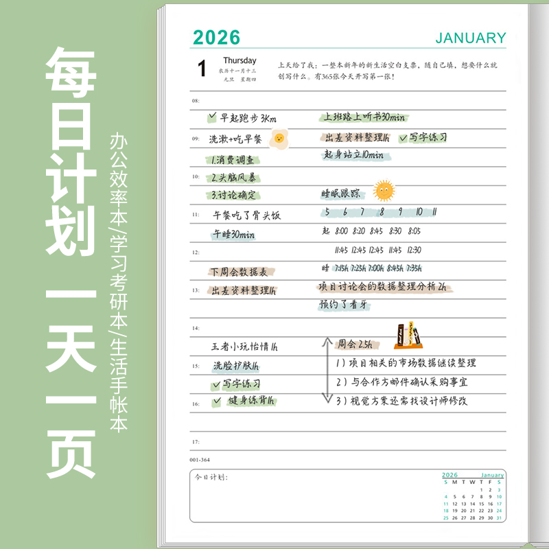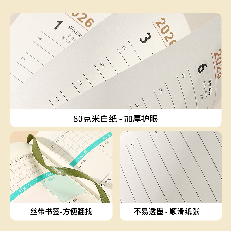 2026年新款日程本计划表日历记事本商务办公创意笔记本效率打卡手册一日一页高颜值日记本礼盒可定制logo