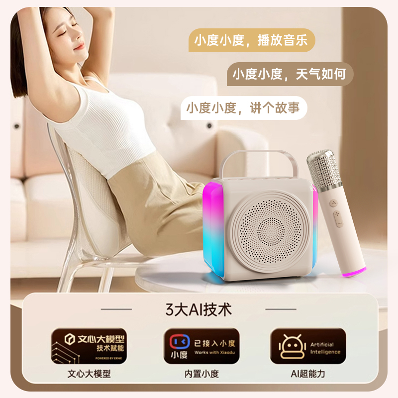 索爱SSK01蓝牙音箱话筒麦克风一体家庭ktv音响套装唱K歌小度智能