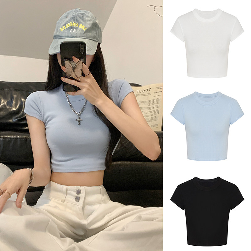 MosesQueen魔西女王纯欲辣妹短袖t恤女夏季修身显瘦短款露脐上衣