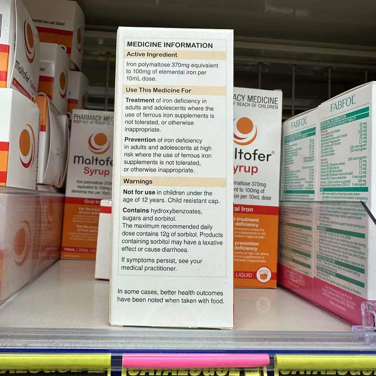 澳洲直邮Maltofer orallron麦芽糖铁补铁液成人孕期补铁元素150ml