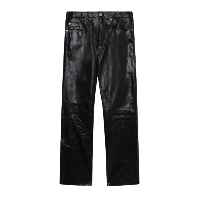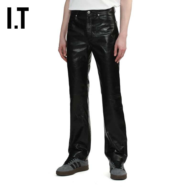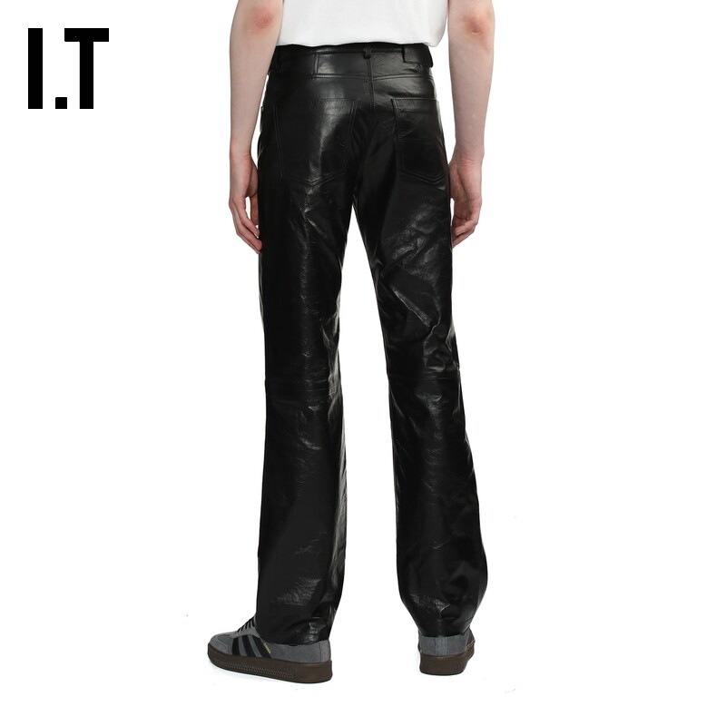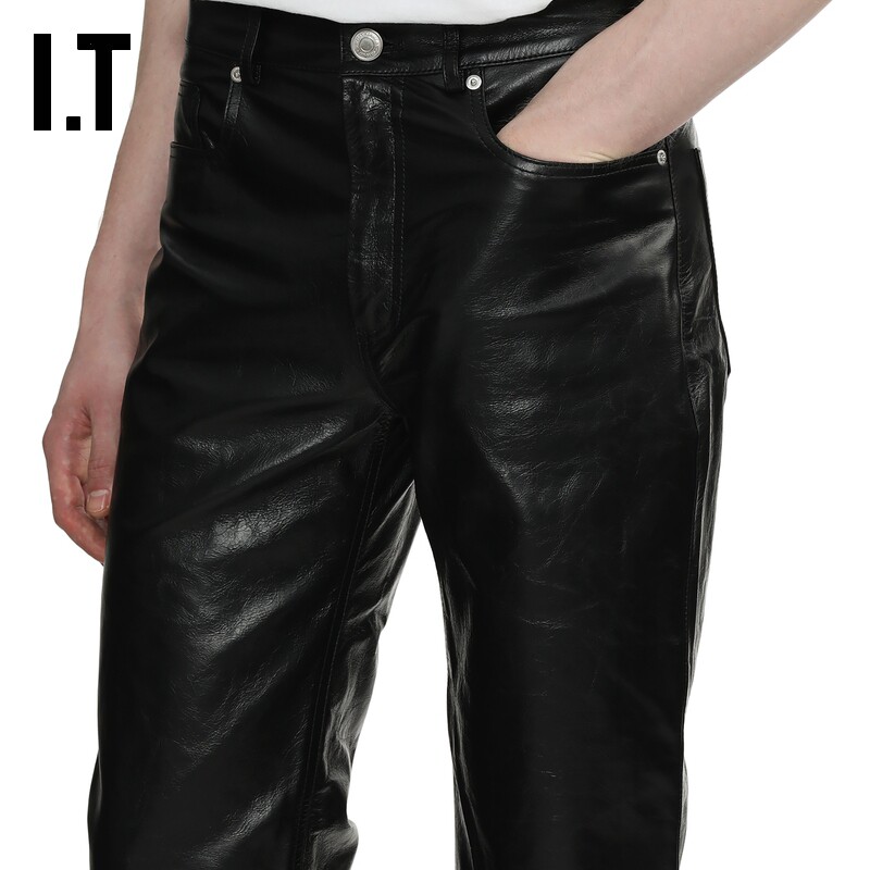 IT AMI男装合身皮裤直筒裤新款复古摩登皮质长裤休闲裤UTR509MM