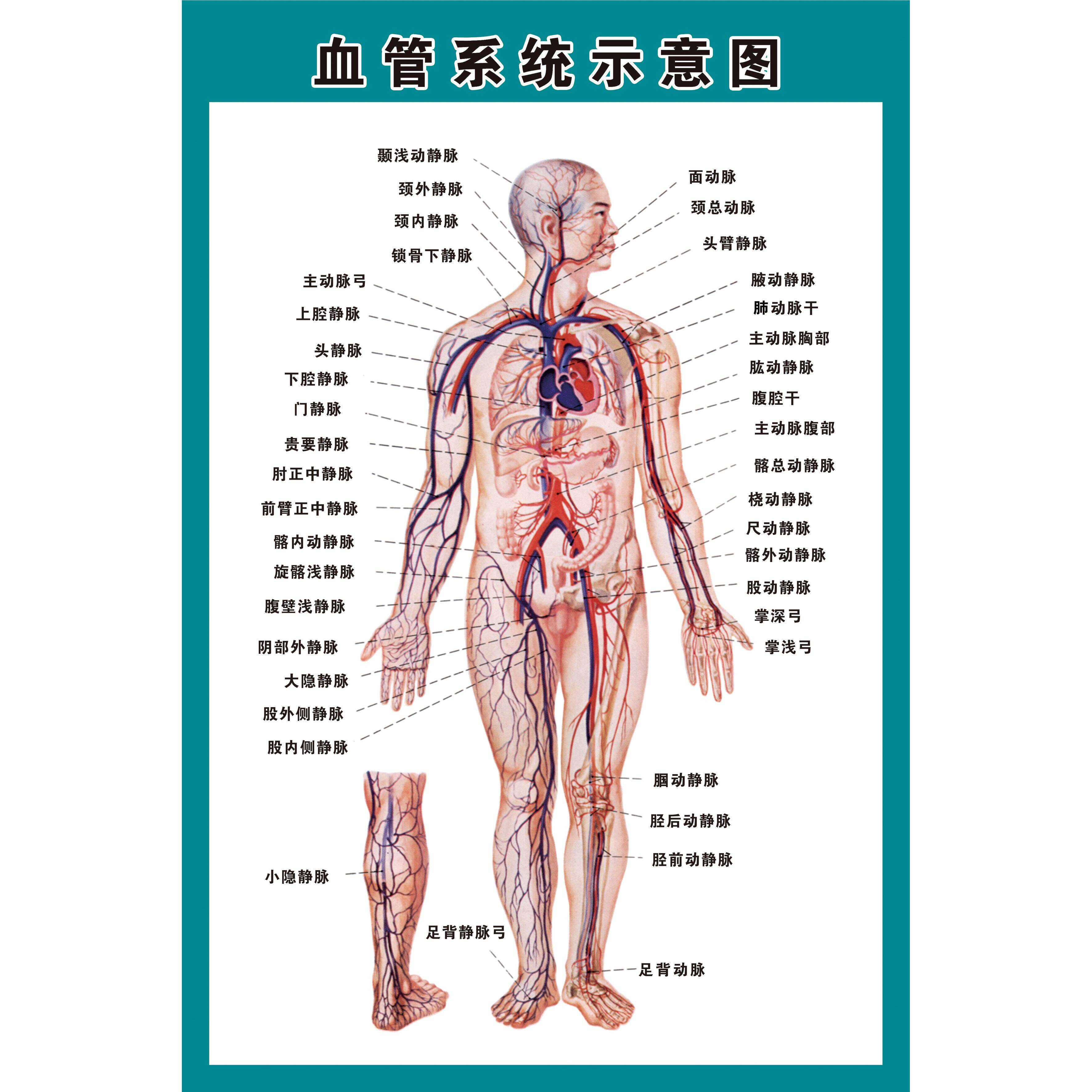 人体解剖图骨骼结构图血液神经器官肌肉淋巴消化泌尿系统示意挂图