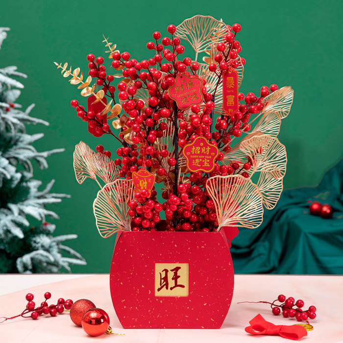 元旦新年福桶抱抱桶发财平安树福字插花桶喜庆过年春节装饰品摆件