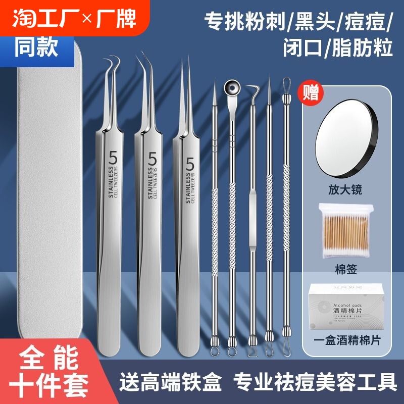 粉刺针套装超细镊子黑头刮闭口细胞夹挑挤痘痘针清洁工具棉签放大