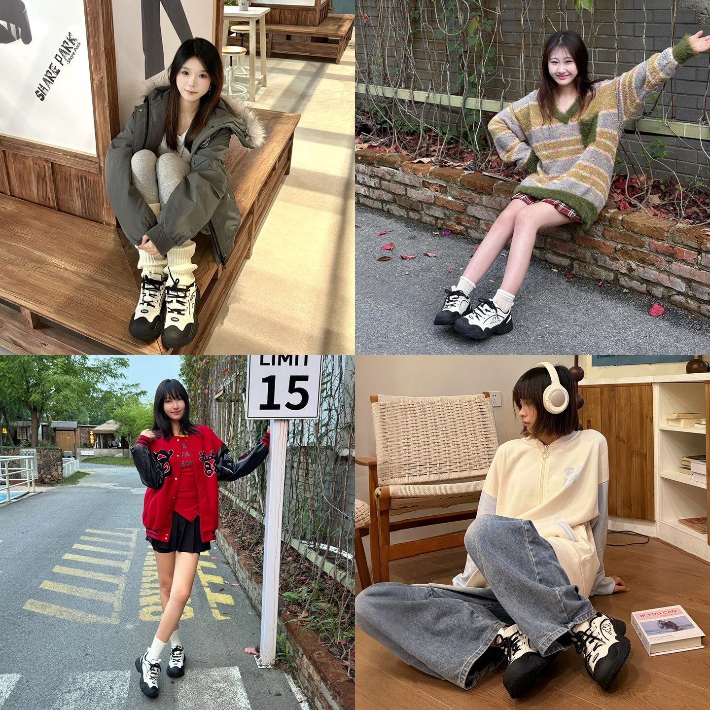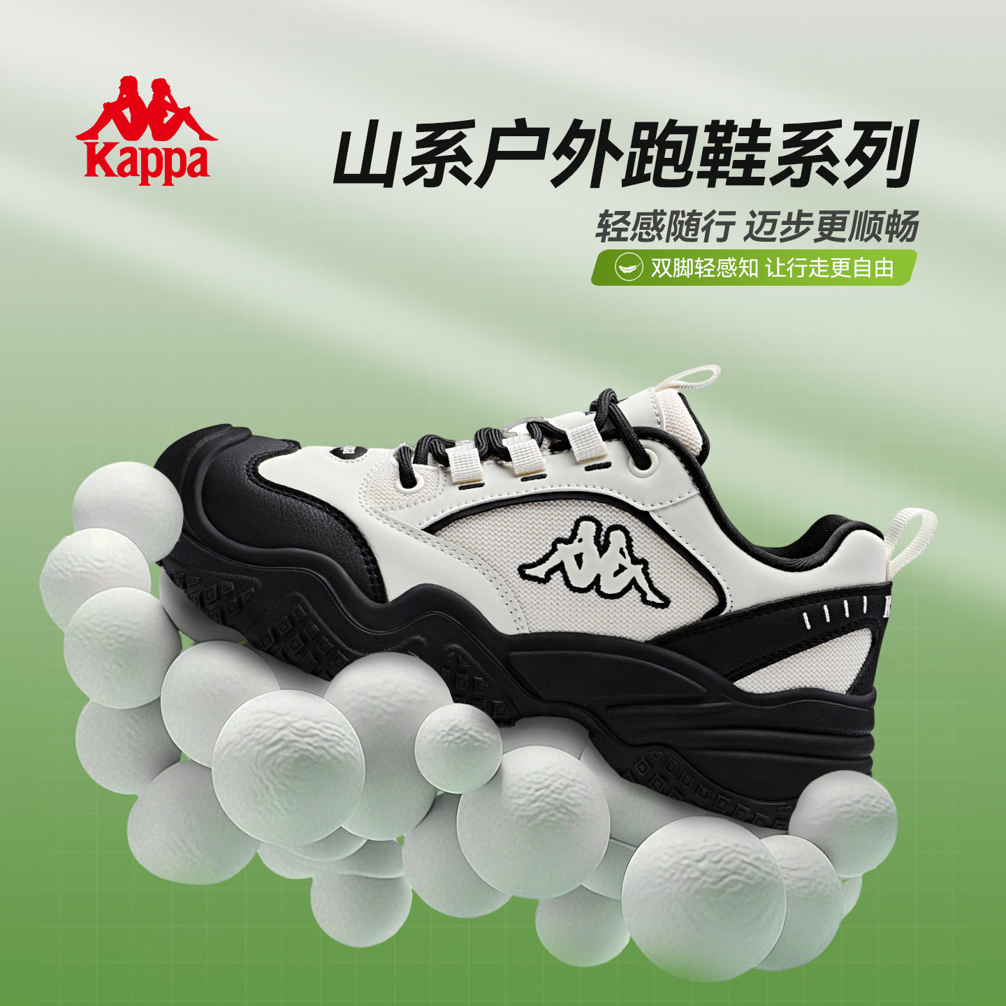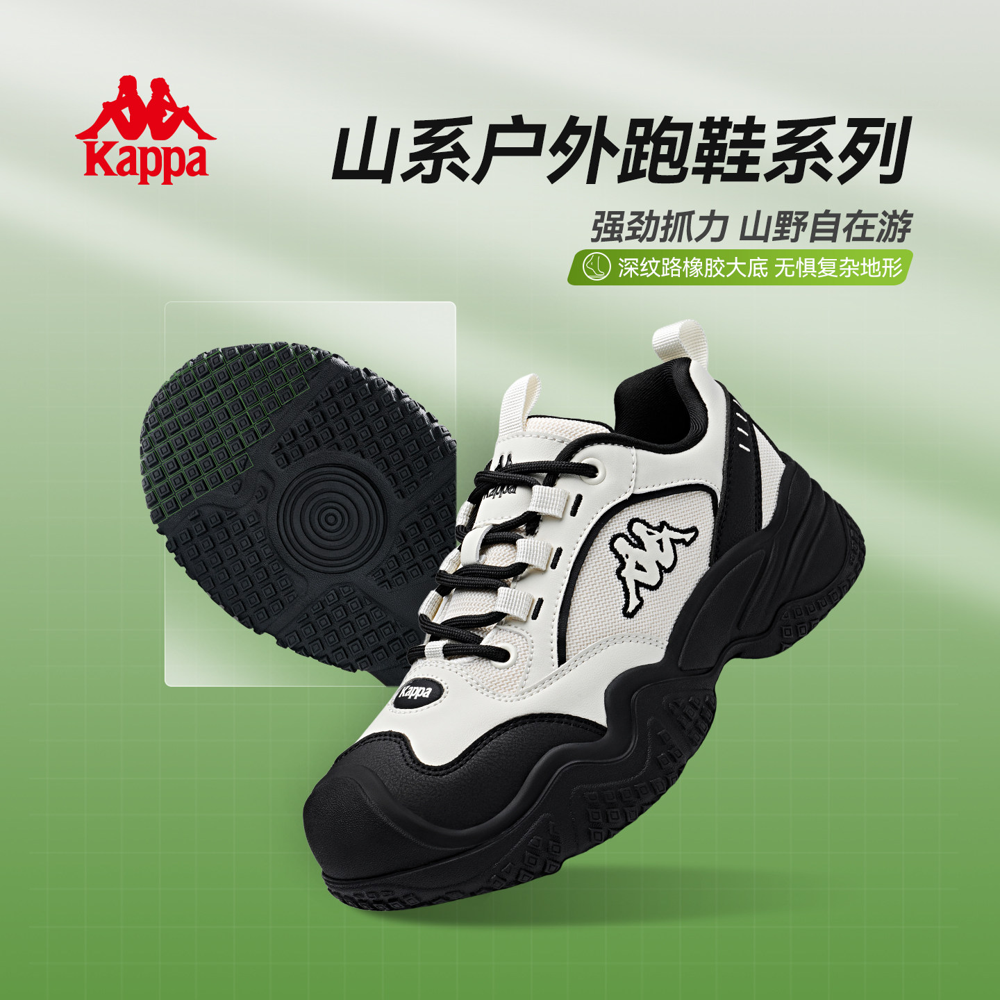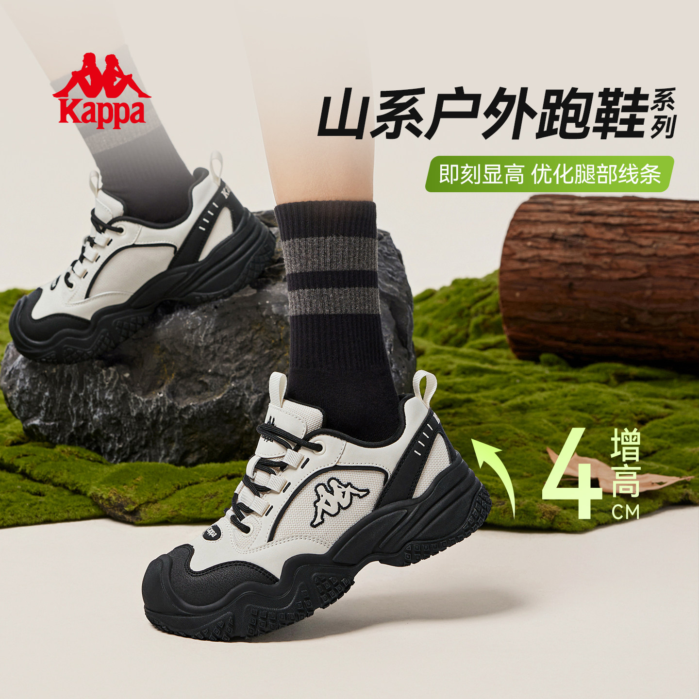 kappa女鞋休闲鞋子2026春季厚底登山鞋增高户外跑步鞋黑色运动鞋