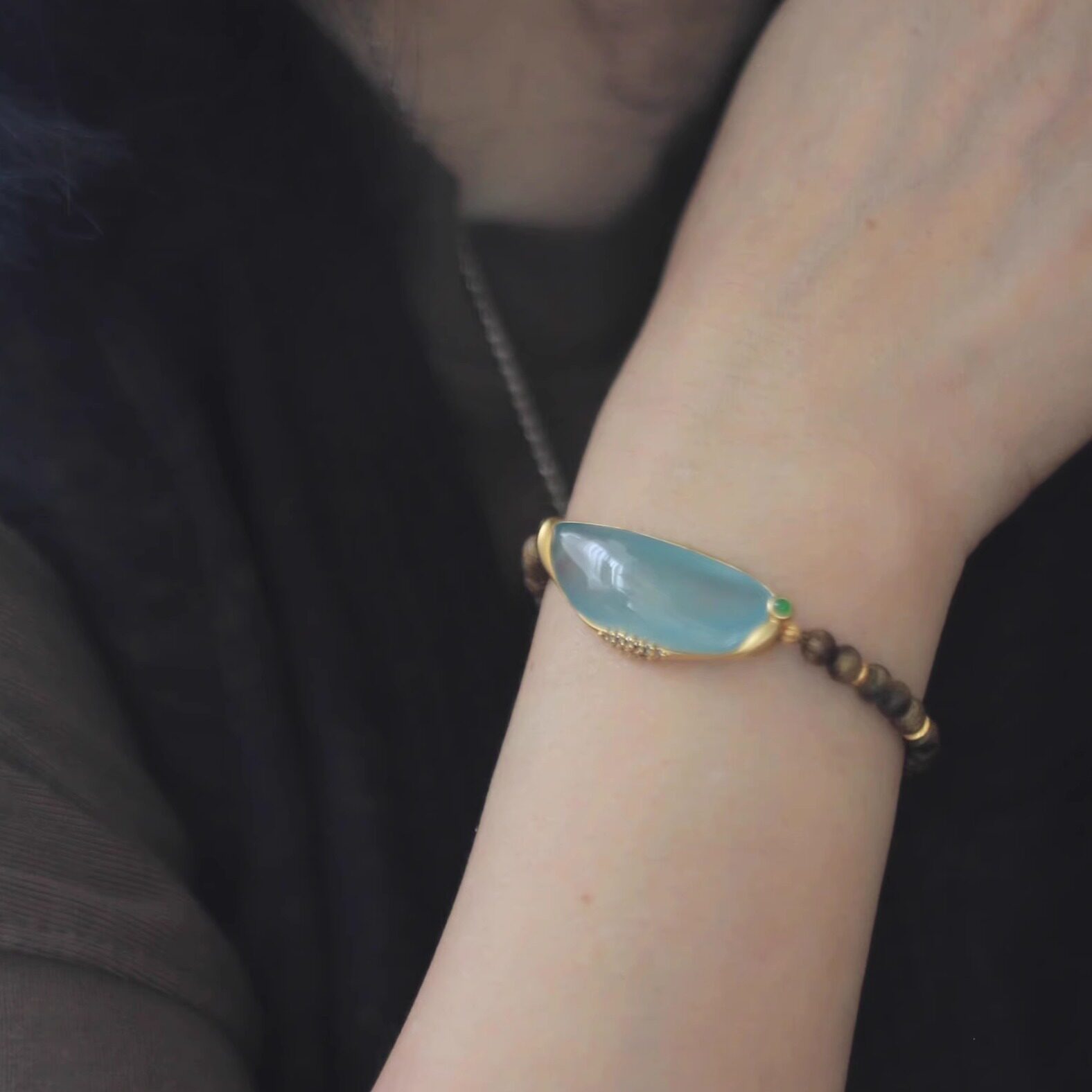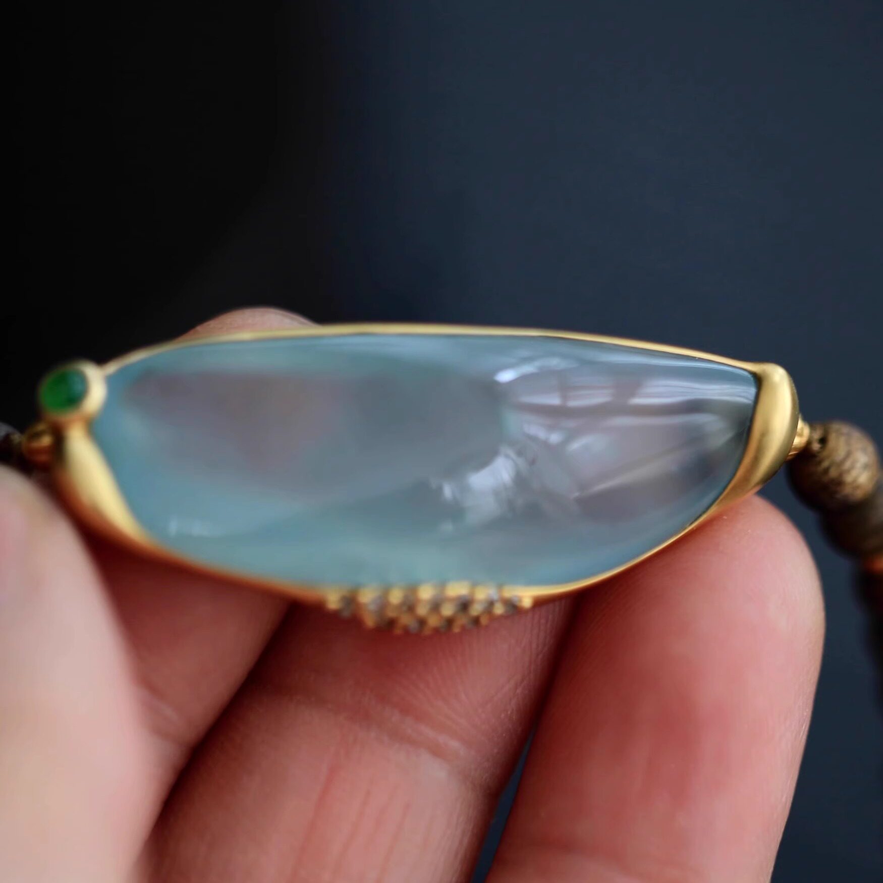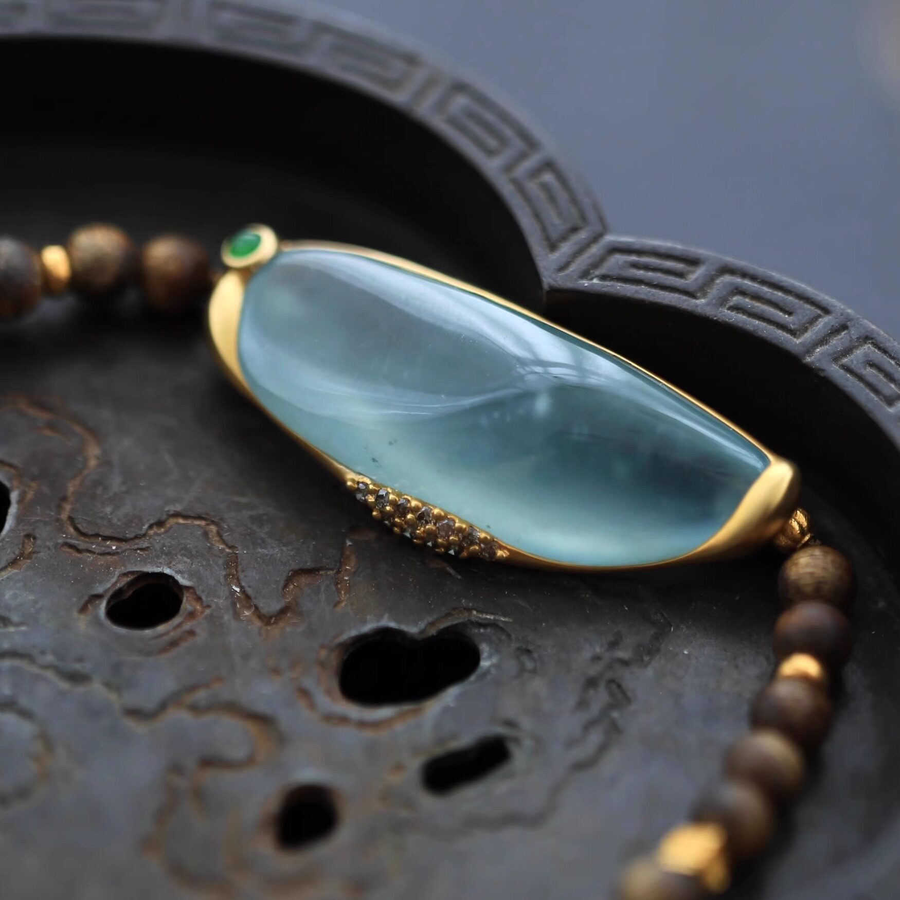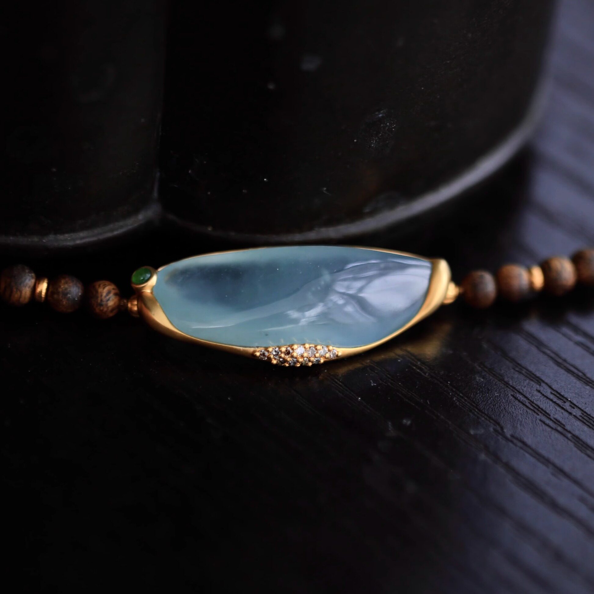 绾青丝设计款缅甸高冰种翡翠A货起光手牌18k金镶钻石沉香手镯