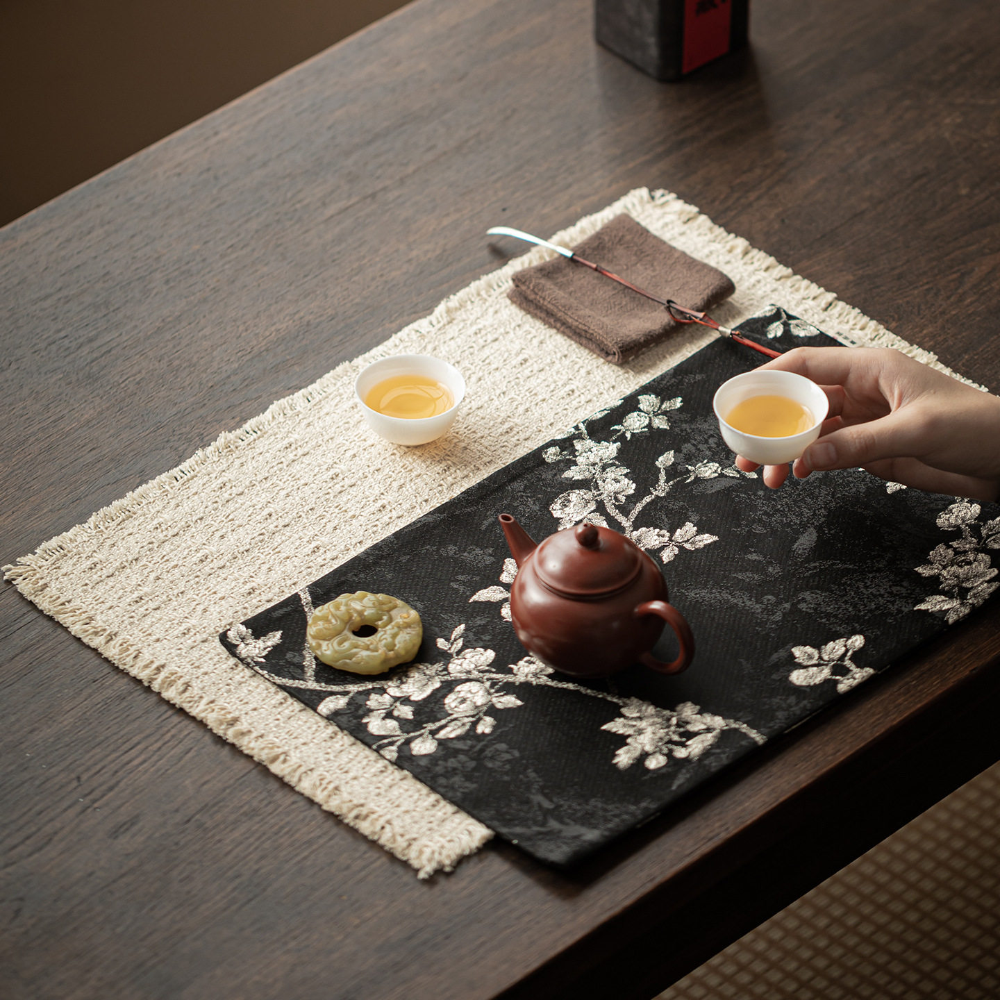 织锦刺绣流苏茶席双面布艺茶桌垫茶具隔热垫居家办公长方形干泡垫