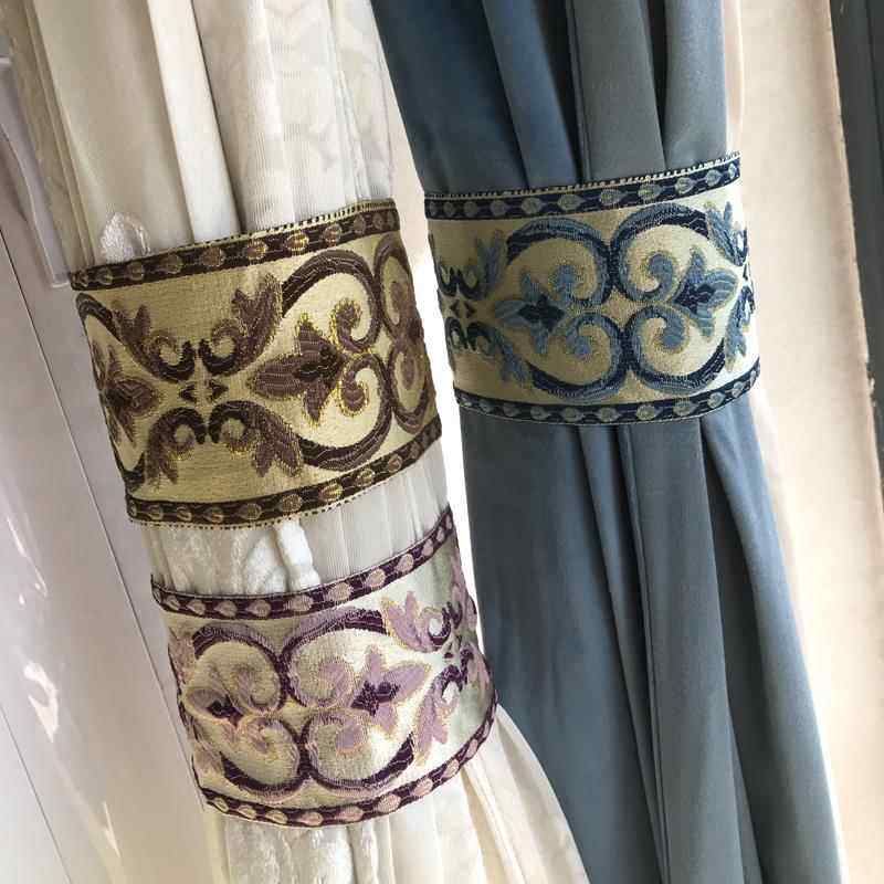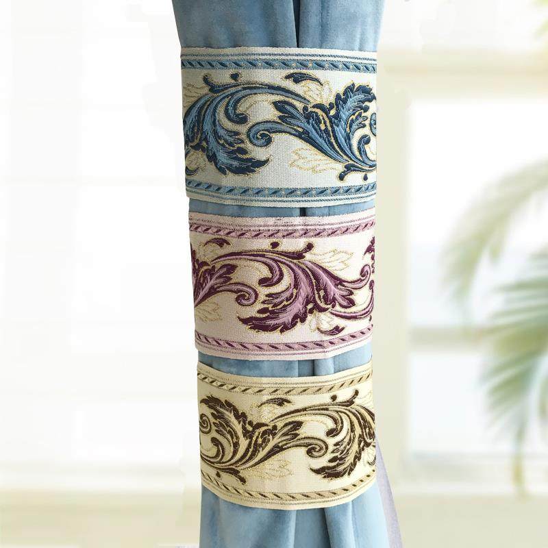 一对装 欧式立体宽幅居家布艺窗帘绑带窗帘扣烫金边客厅卧室别墅