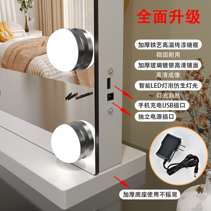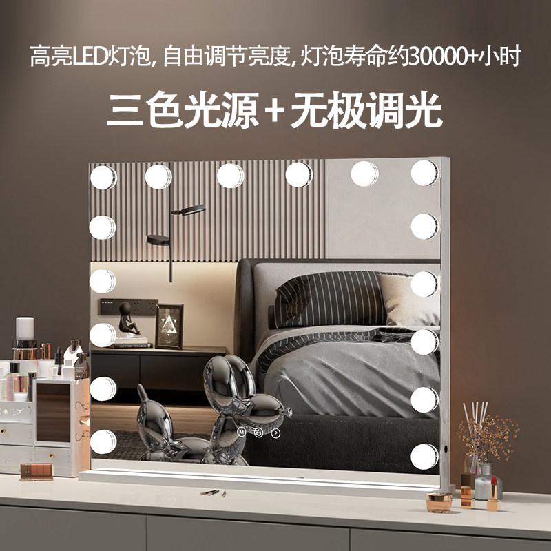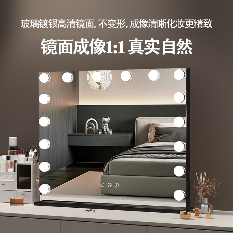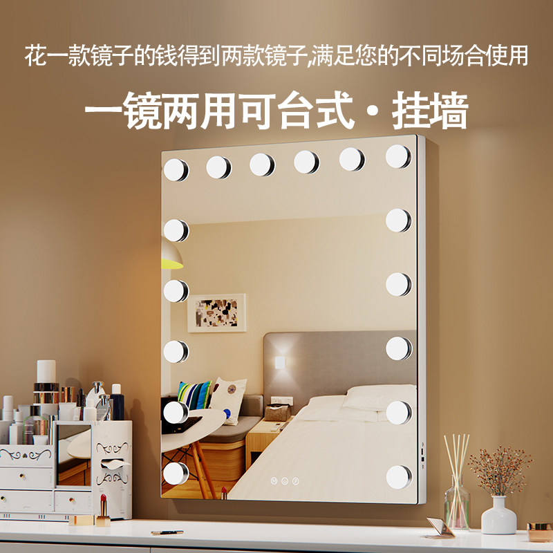 桌面led化妆镜带灯化妆师影楼家用充插电梳妆台式美妆补光大镜子