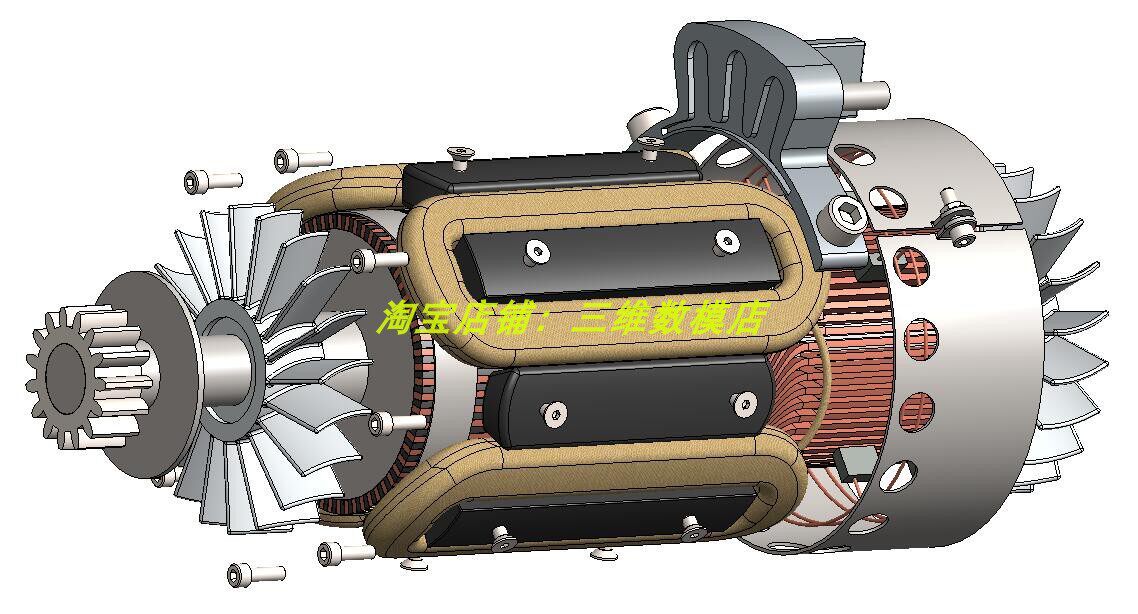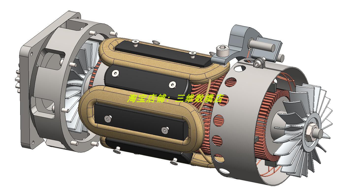 飞机直流起动发电机3D三维几何数模型Solidworks风扇铜线圈定转子