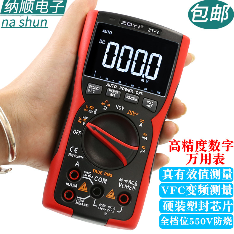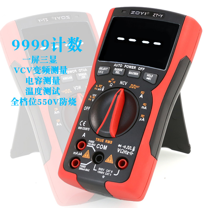 众仪ZT-Y智能防烧电工家用数字万用表自动量程万能表测变频器电容