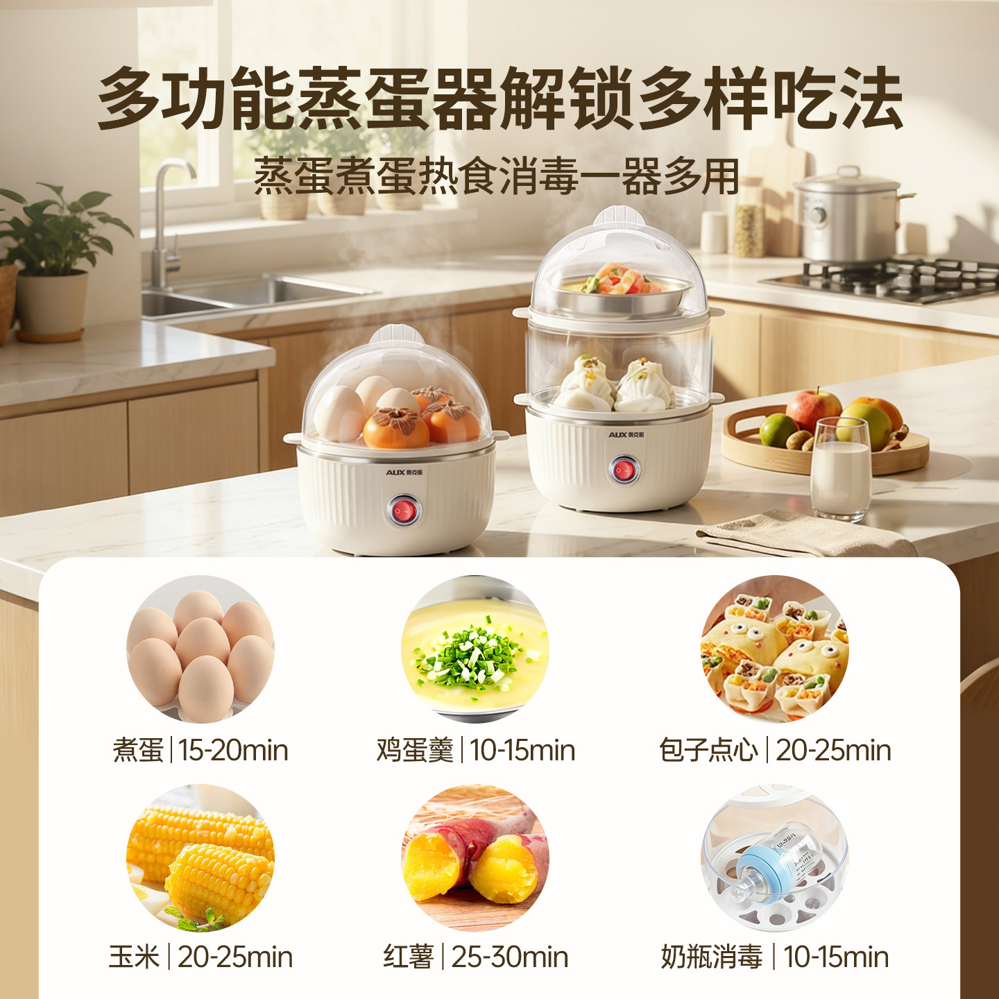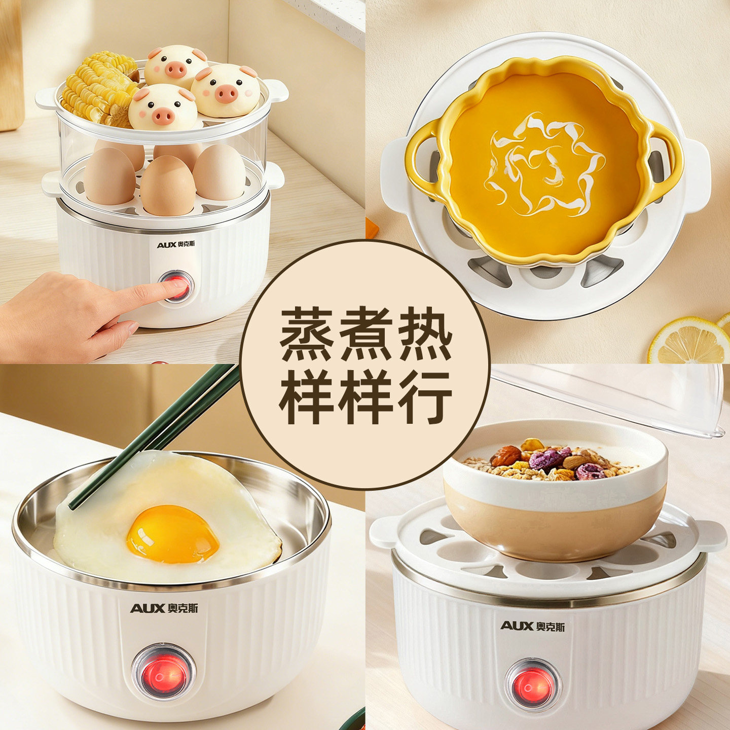 奥克斯多层煮蛋器蒸蛋器高温断电多功能蒸鸡蛋小型家用早餐机新款