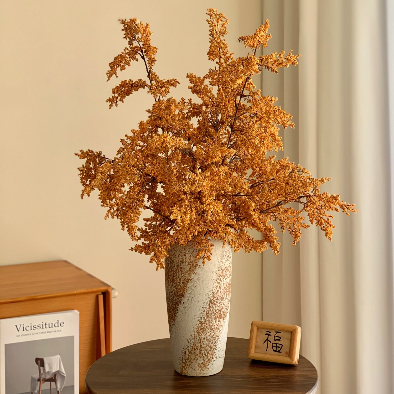 侘寂风油画雾凇仿真花插花秋日氛围造景假花装饰品玄关摆件高级感