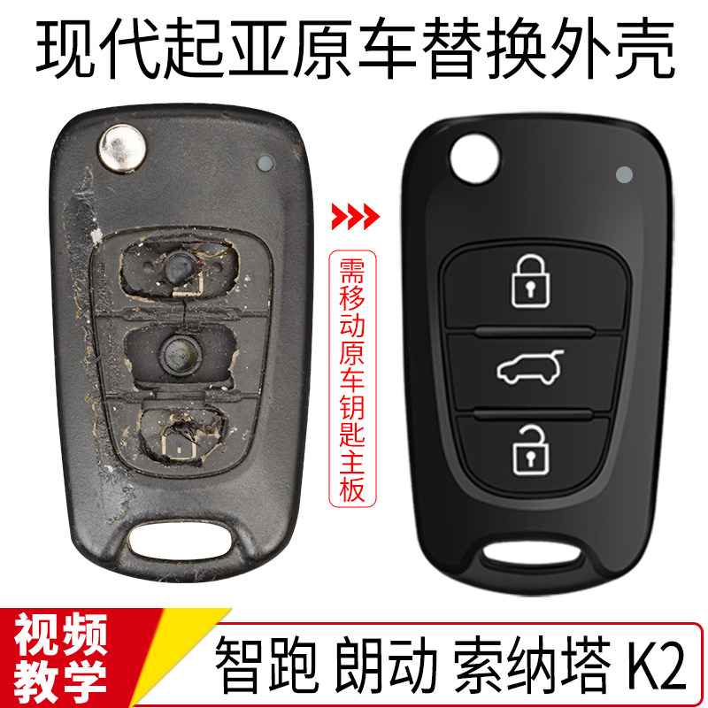 适用现代起亚k2瑞纳悦动i30狮跑ix35智跑朗动遥控汽车钥匙壳替换
