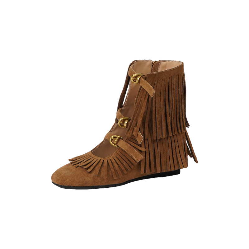 【Hibseux槿奢】复古流苏罗马凉鞋女2026新款尖头镂空增高西部靴