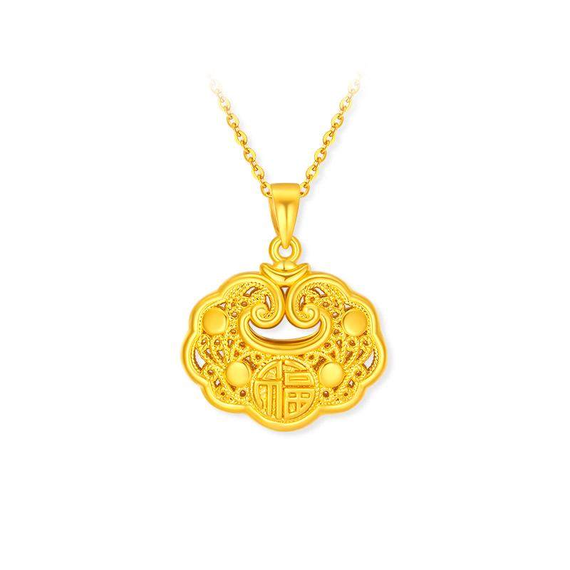 周大生黄金吊坠项链足金祥云福字平安金锁包挂坠女友节日礼物