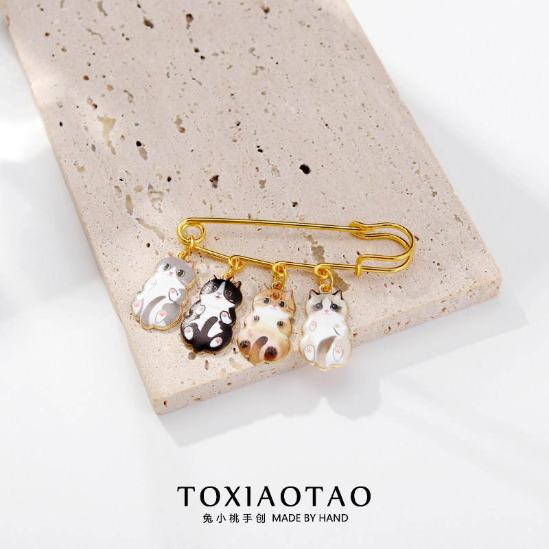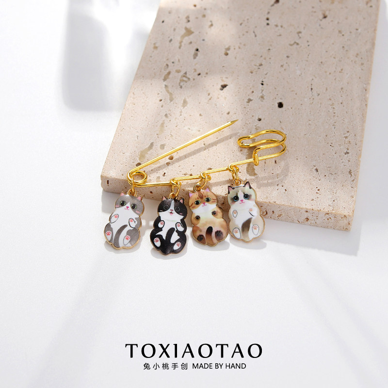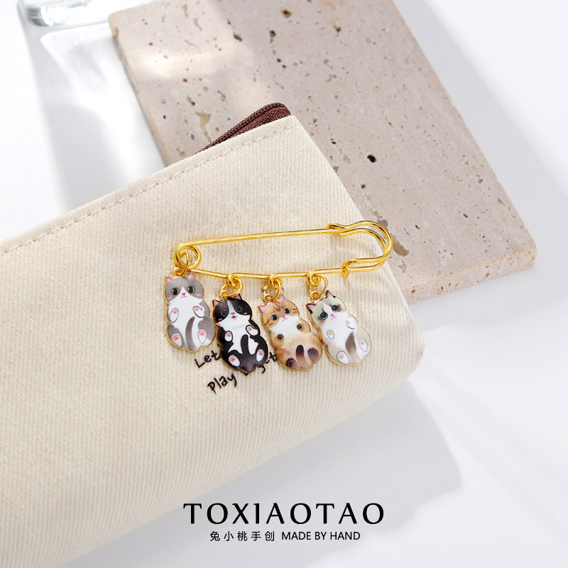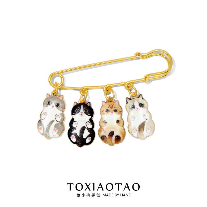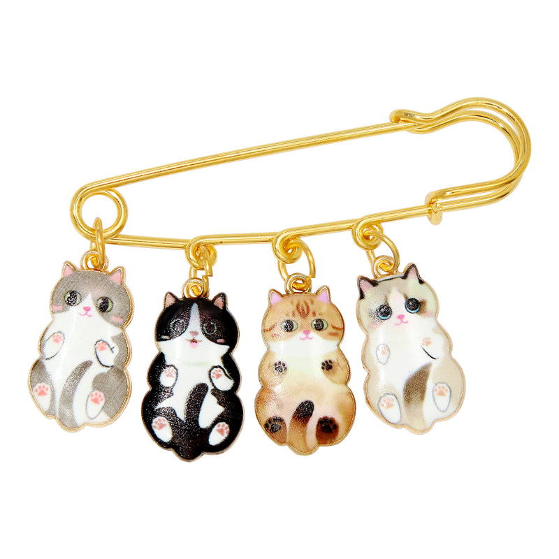 可爱卡通四只猫猫大别针胸针收腰神器防走光固定衣服围巾包包装饰