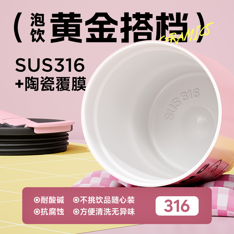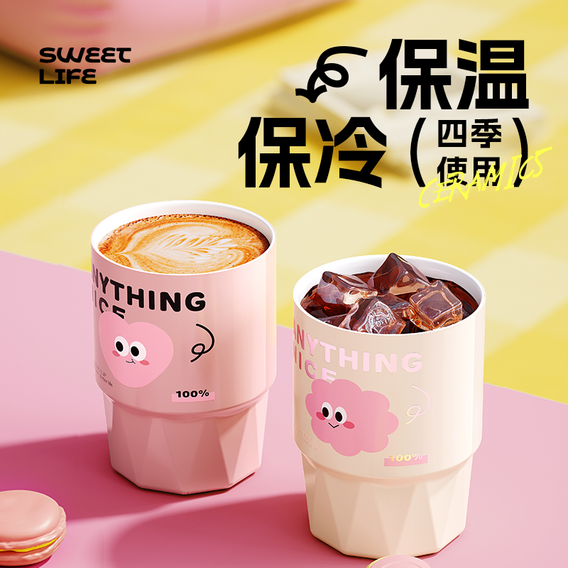 保温杯女生高颜值咖啡杯陶瓷内胆便携小巧双饮吸管水杯子2025新款