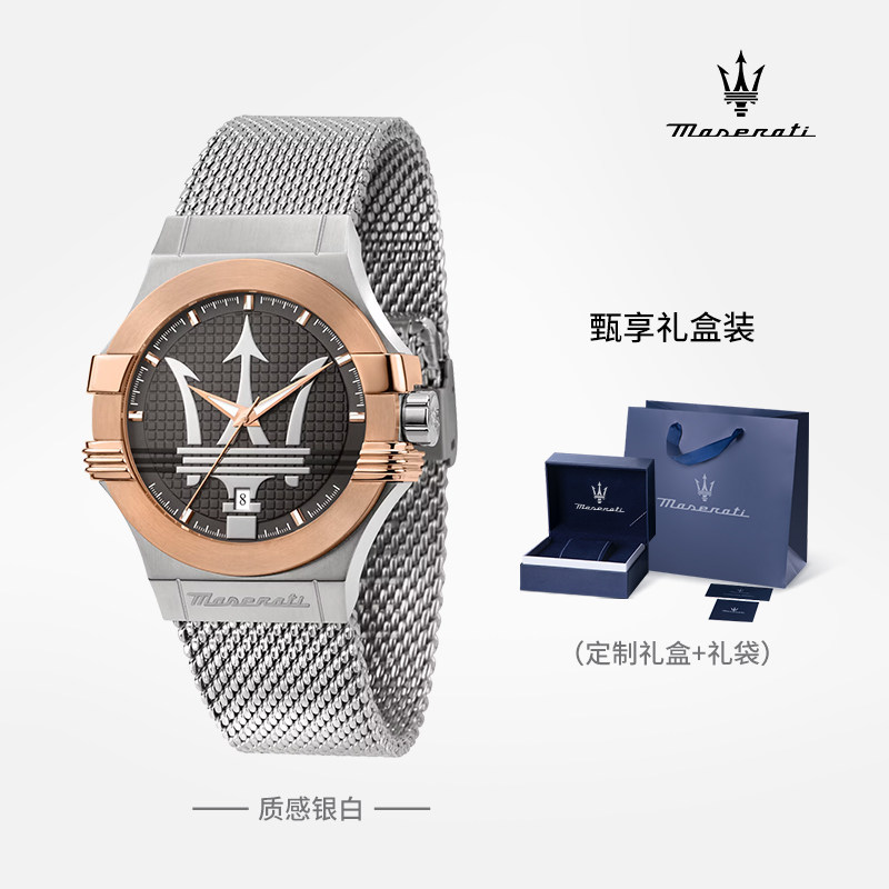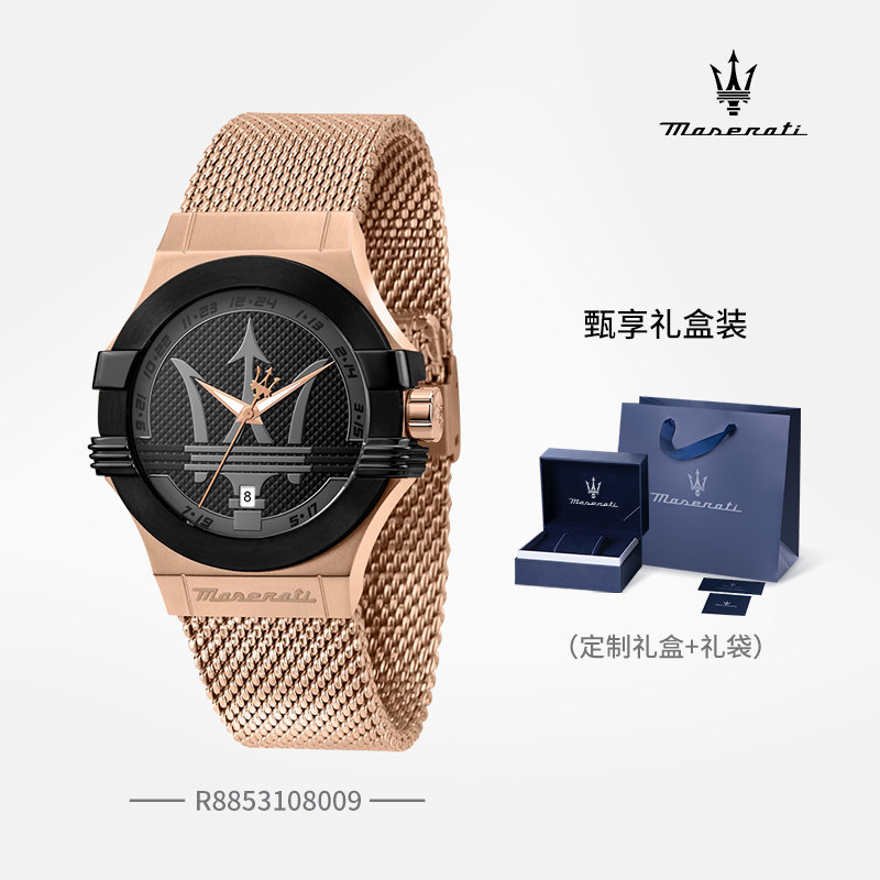 玛莎拉蒂手表男士商务欧美时尚手表玫瑰金表盘钢带表带石英腕表