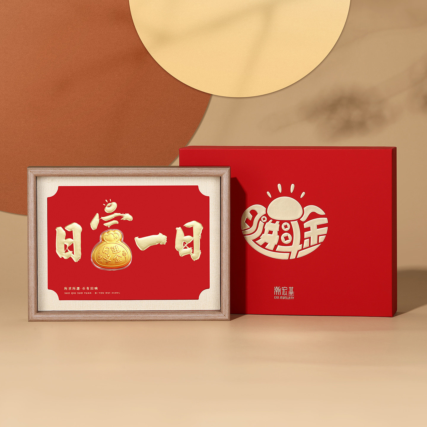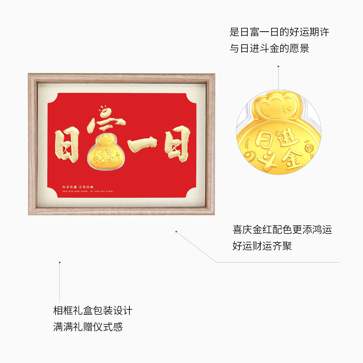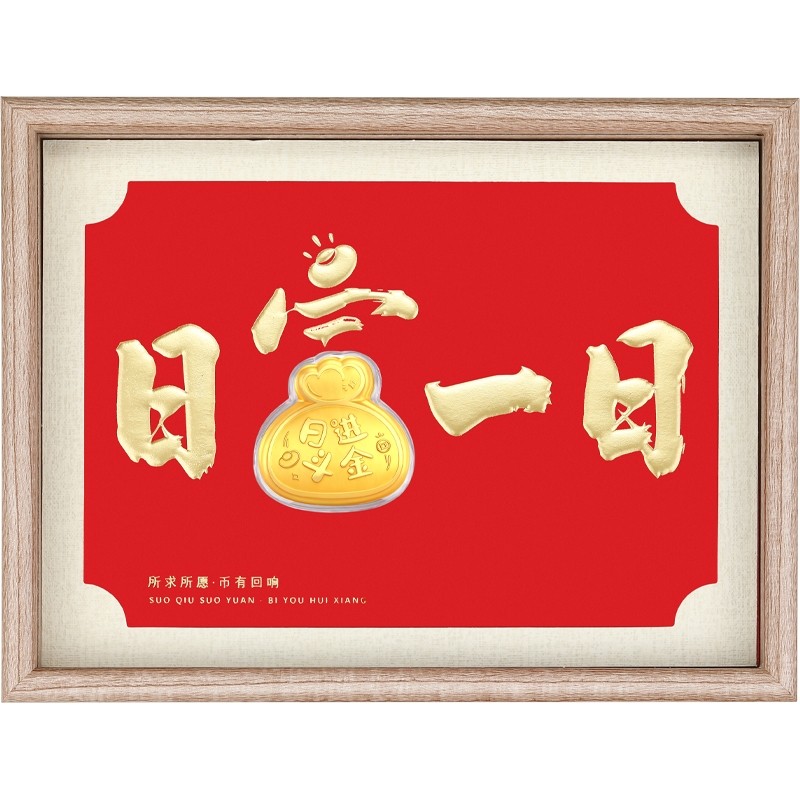 潮宏基好事发生日进斗金黄金礼盒足金摆件投资金入户相框新年礼物