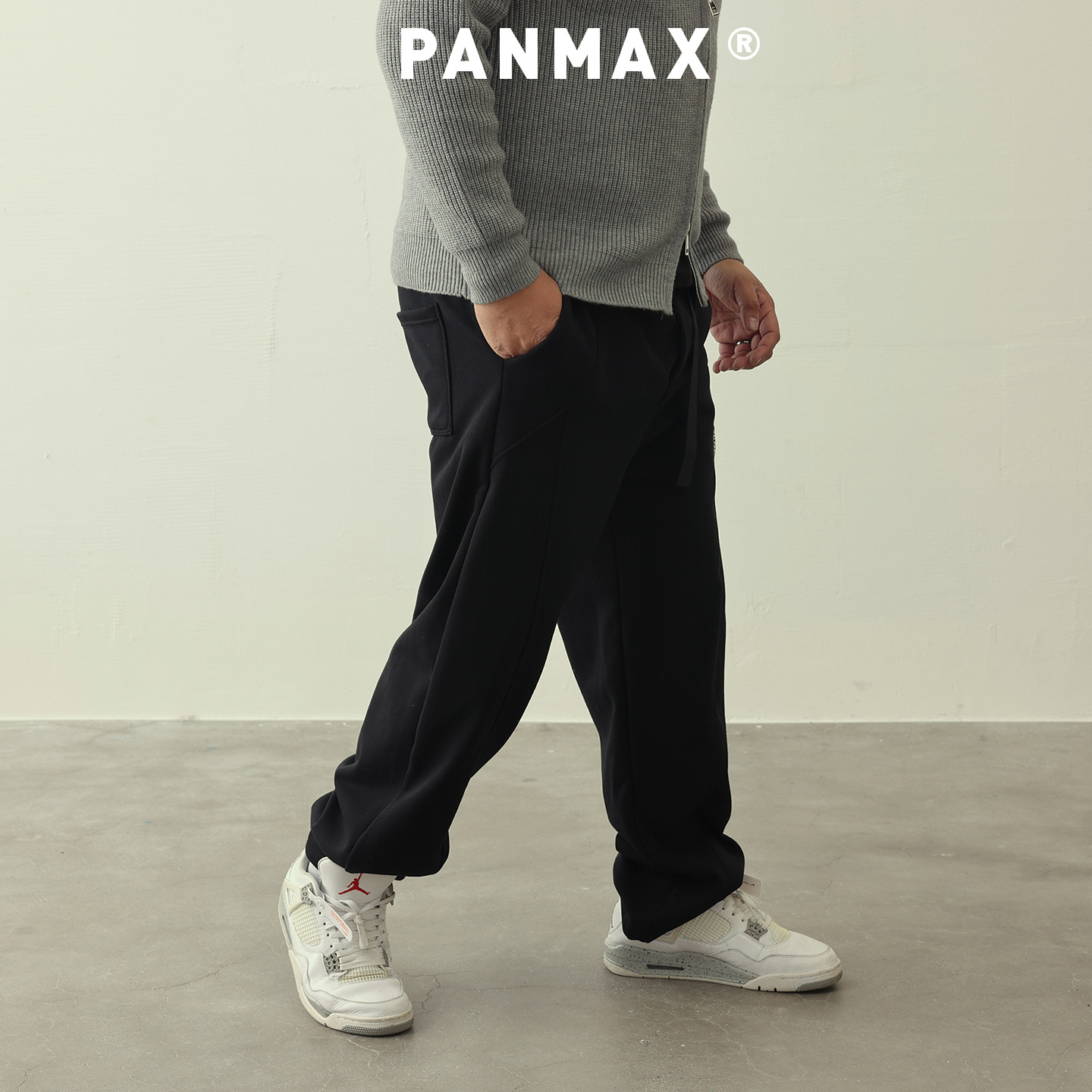 PANMAX潮牌大码男装卫裤秋冬亲肤棉质抽绳保暖加厚宽松直筒运动裤