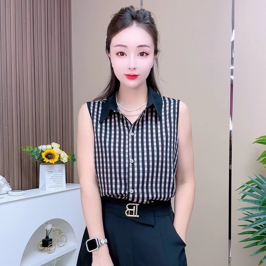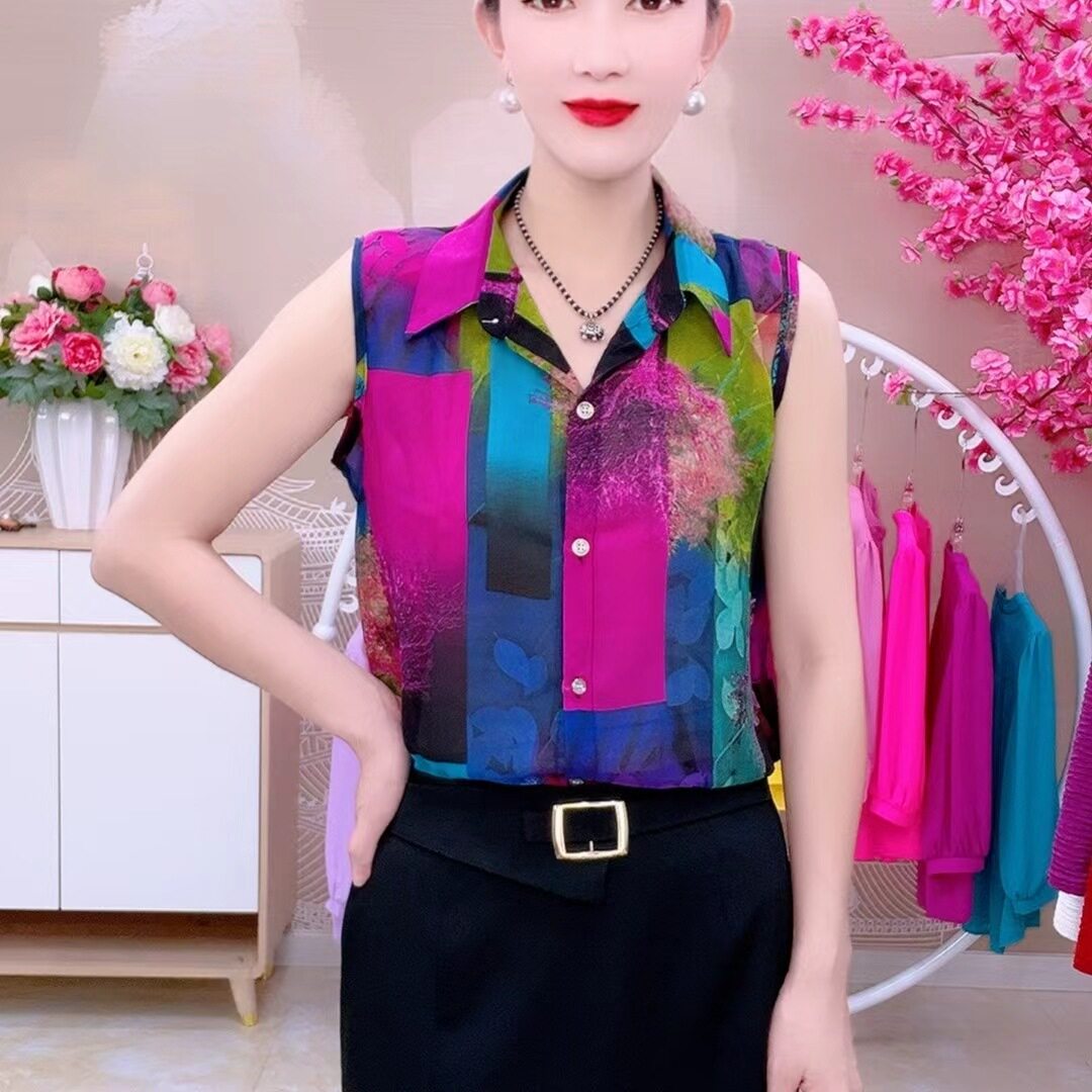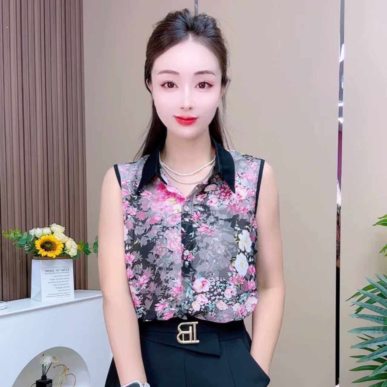 复古印花雪纺衫女士夏季轻薄透气无袖衬衫大码显瘦内搭可外穿开衫