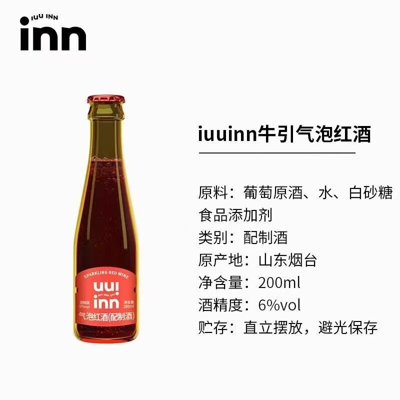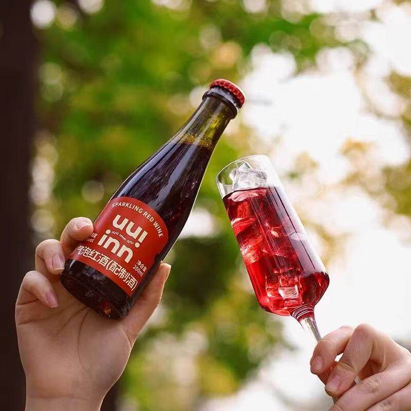 牛引气泡红酒配制酒200ml瓶装红色气泡酒果味饮料