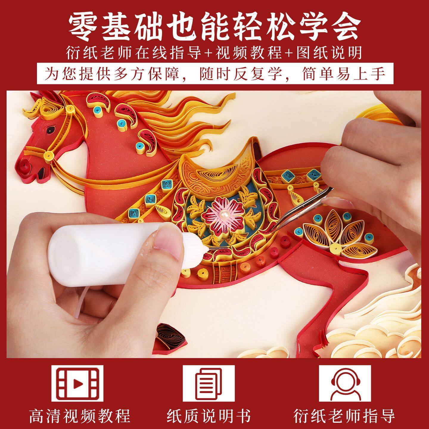赛卓2026马年衍纸画衍纸手工diy材料包彩色卡纸小学生专用衍纸工具套装元旦节立体相框摆件贺岁礼物儿童折纸