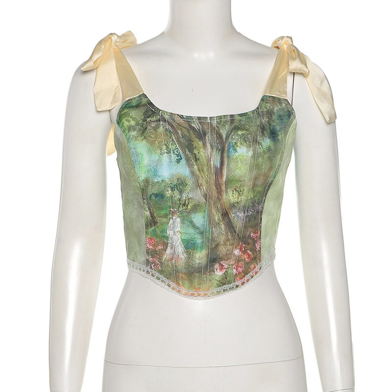 Camisole Cropped Navel Slim Tank Top 吊带露脐修身绑带小背心