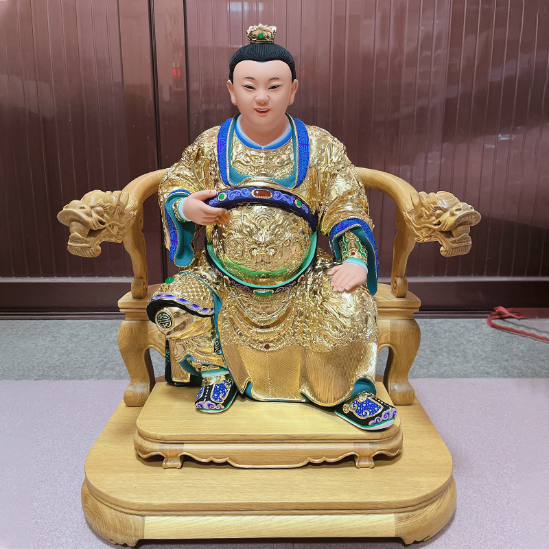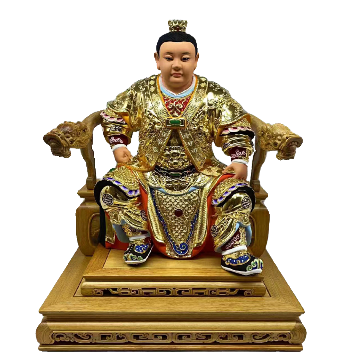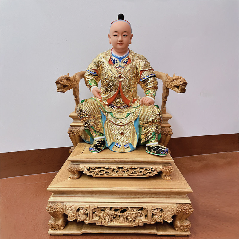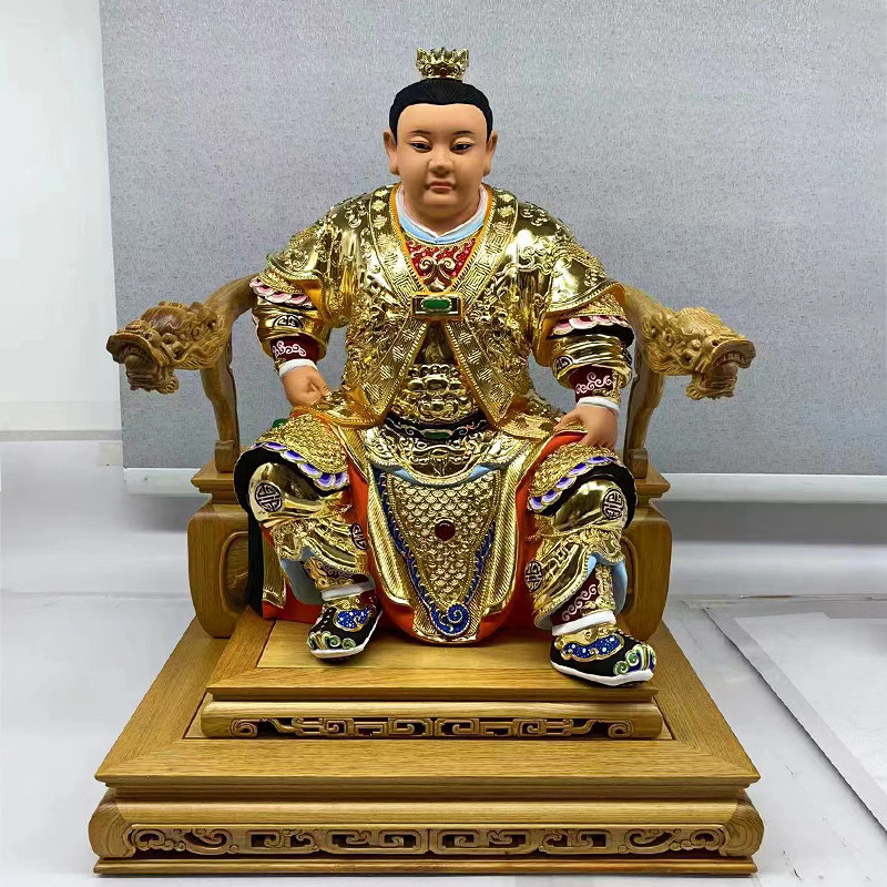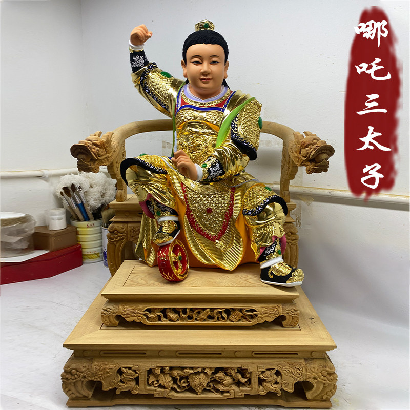 哪吒三太子香樟木雕脚踏风火轮托椅神像中坛元帅台湾家用供奉摆件