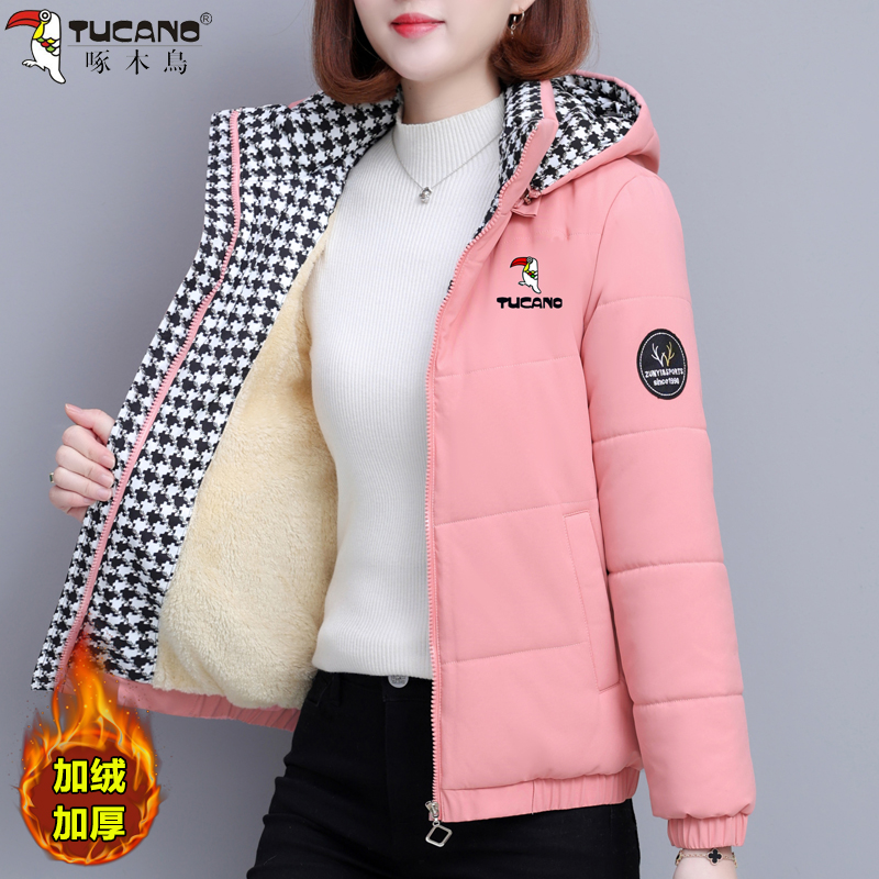 啄木鸟羽绒棉服女士2025新款中年妈妈加绒加厚保暖棉衣小棉袄外套