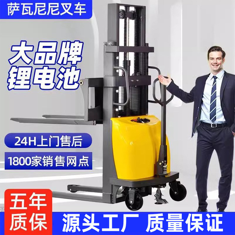 半全电动叉车1.5吨堆高车液压装卸车2吨升高小型步行式站驾插腿式