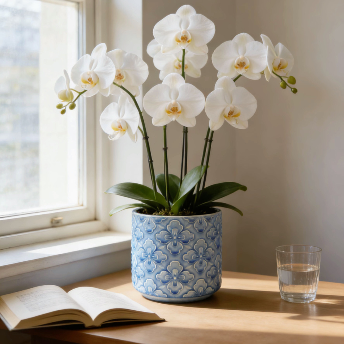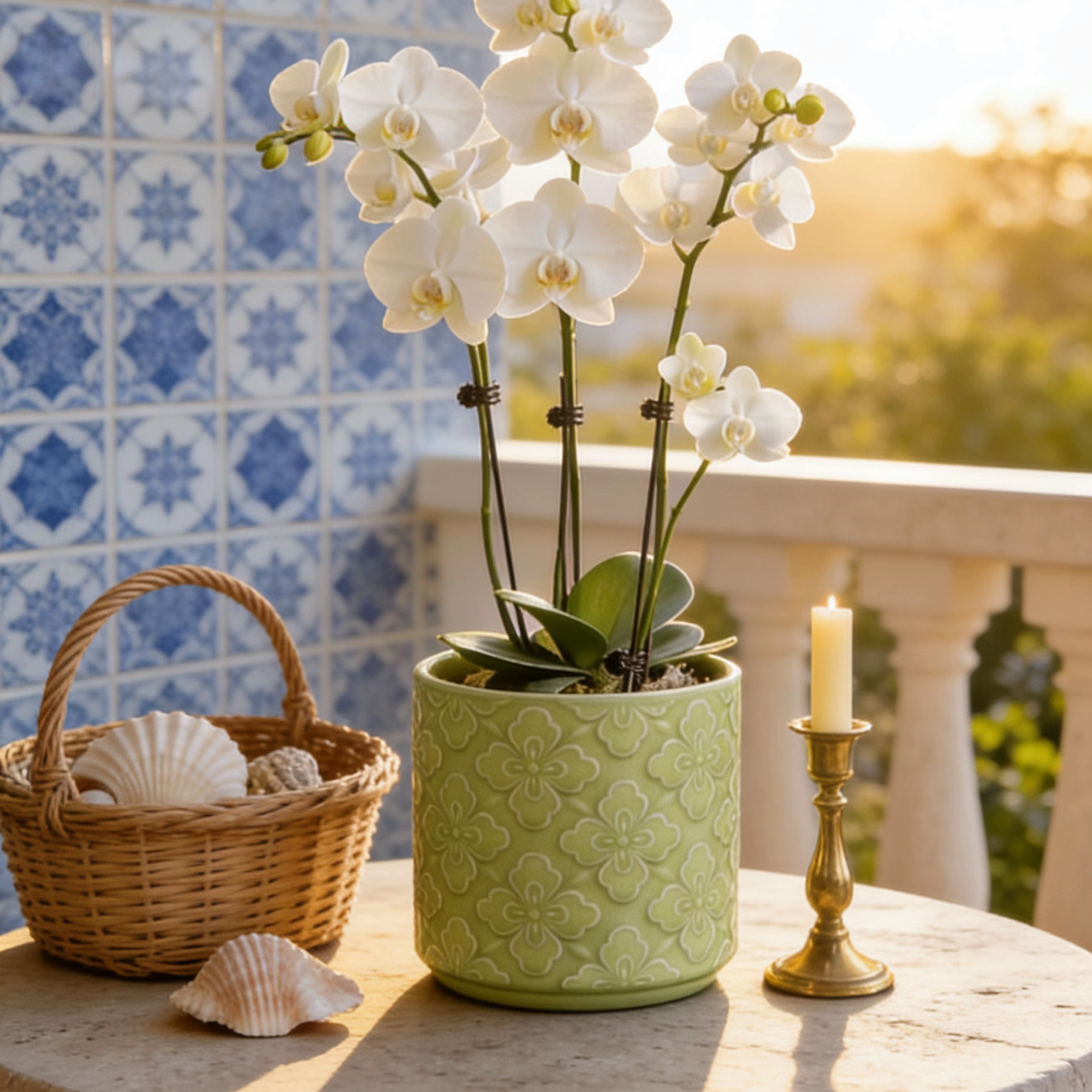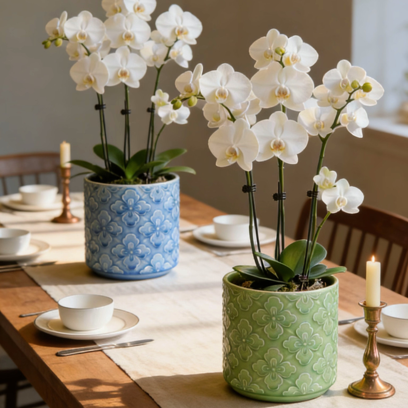 出口北欧手工花盆孤品简约浮雕花釉陶瓷设计师蝴蝶兰绿植花器