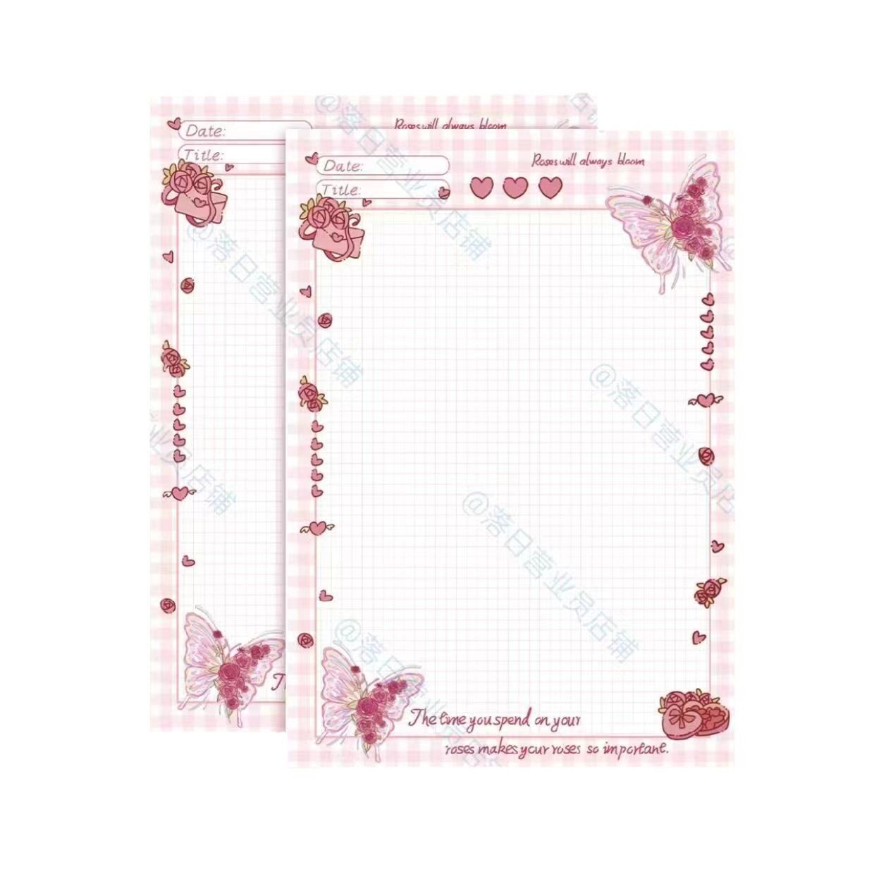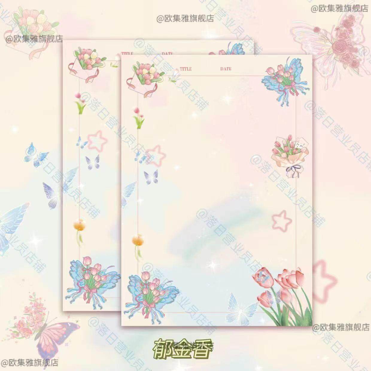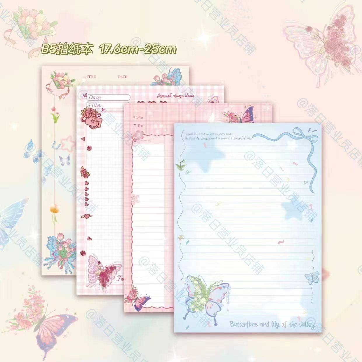 B5蝴蝶花语拍纸本高颜值ins学习学生笔记本无粘性便签可撕记事本郁金香拍纸本玫瑰日记本可撕少女心简约
