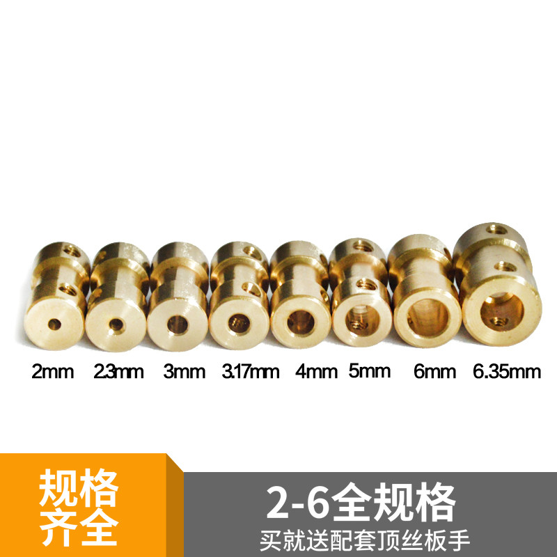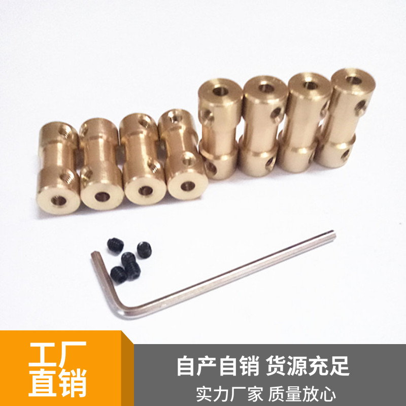 小型黄铜联轴器 模型电机马达传动变径转接头 刚性金属连接套配件