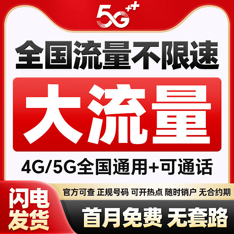 移动基站流量卡纯流量上网卡5g无线限全国通用大流量手机卡电话卡