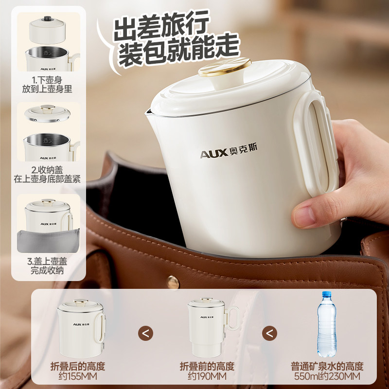 奥克斯全钢折叠水壶旅行出差便携式烧水壶不锈钢电热水杯迷你家用