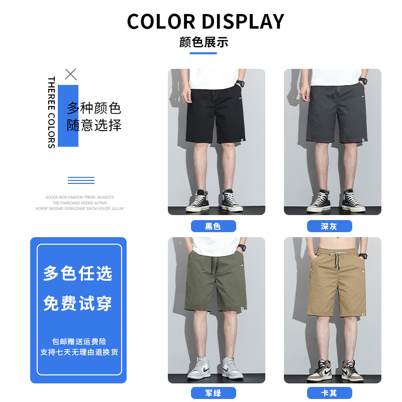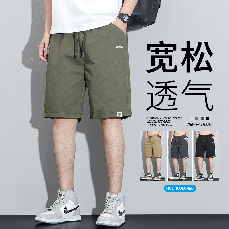 夏天纯棉卡其色工装短裤男士夏季宽松外穿中裤运动五分裤子男透气