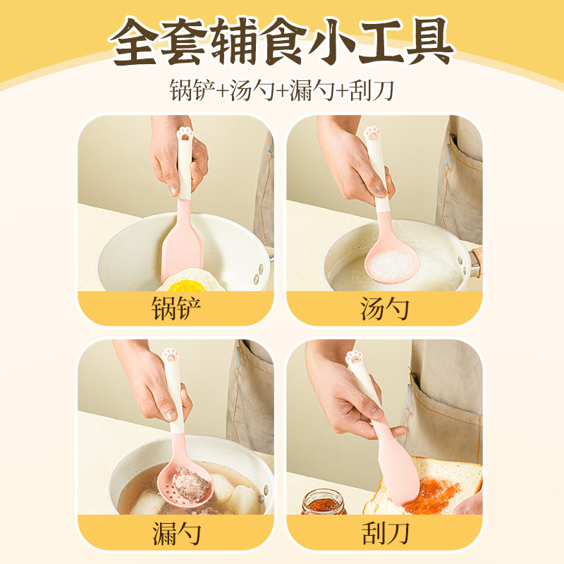 拜格小号迷你硅胶锅铲汤勺子厨房婴儿宝宝专用辅食不粘锅工具套装