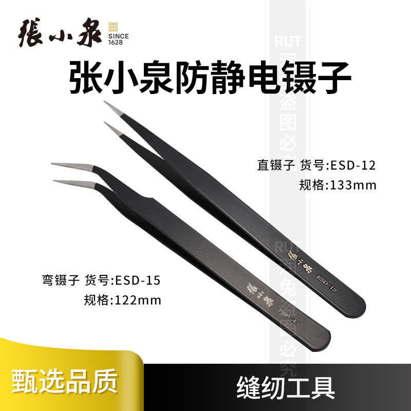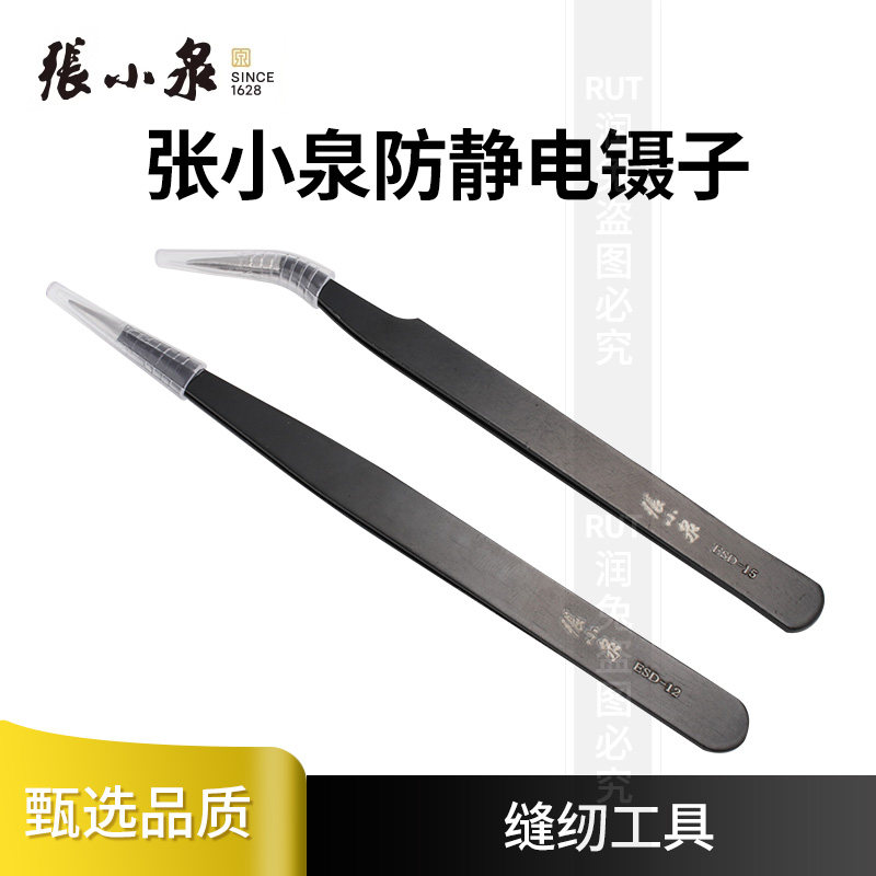 张小泉防静电弯镊子直尖头缝纫机专用夹线夹子精密聂子弯头针夹子