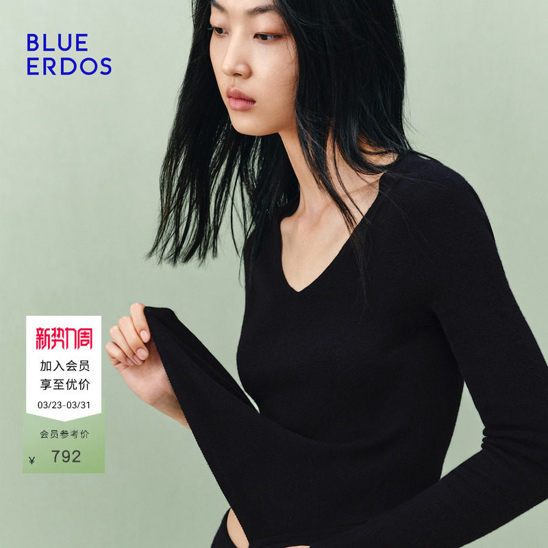 【零感羊绒】BLUE ERDOS 春季新品羊毛羊绒轻盈修身V领长袖套衫