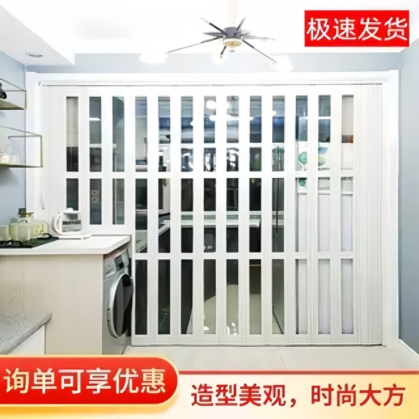 pvc折叠隔断门转角折叠门开放式厨房隐形拐角防火煤气开栓临时